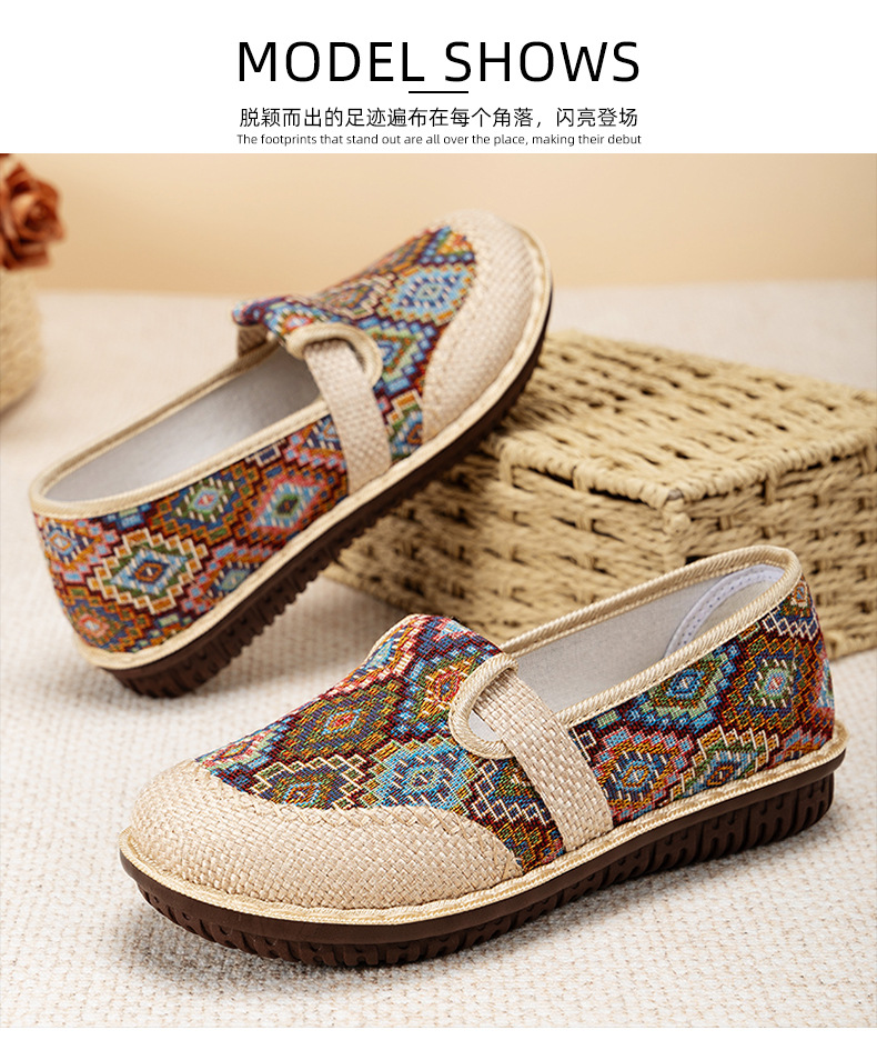 신발 여성 여름 새로운 통기성 슬립 온 소프트 솔 신발 린넨 편안한 민족 스타일 올드 베이징 캐주얼 천 신발