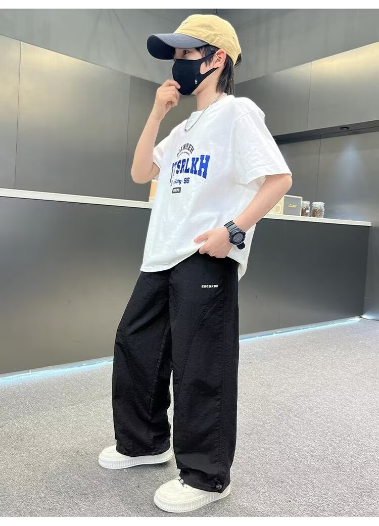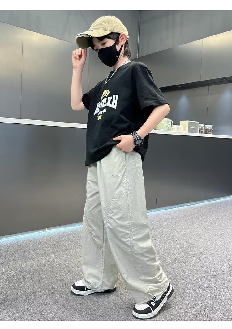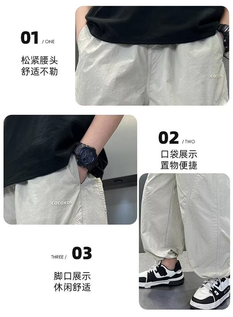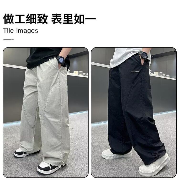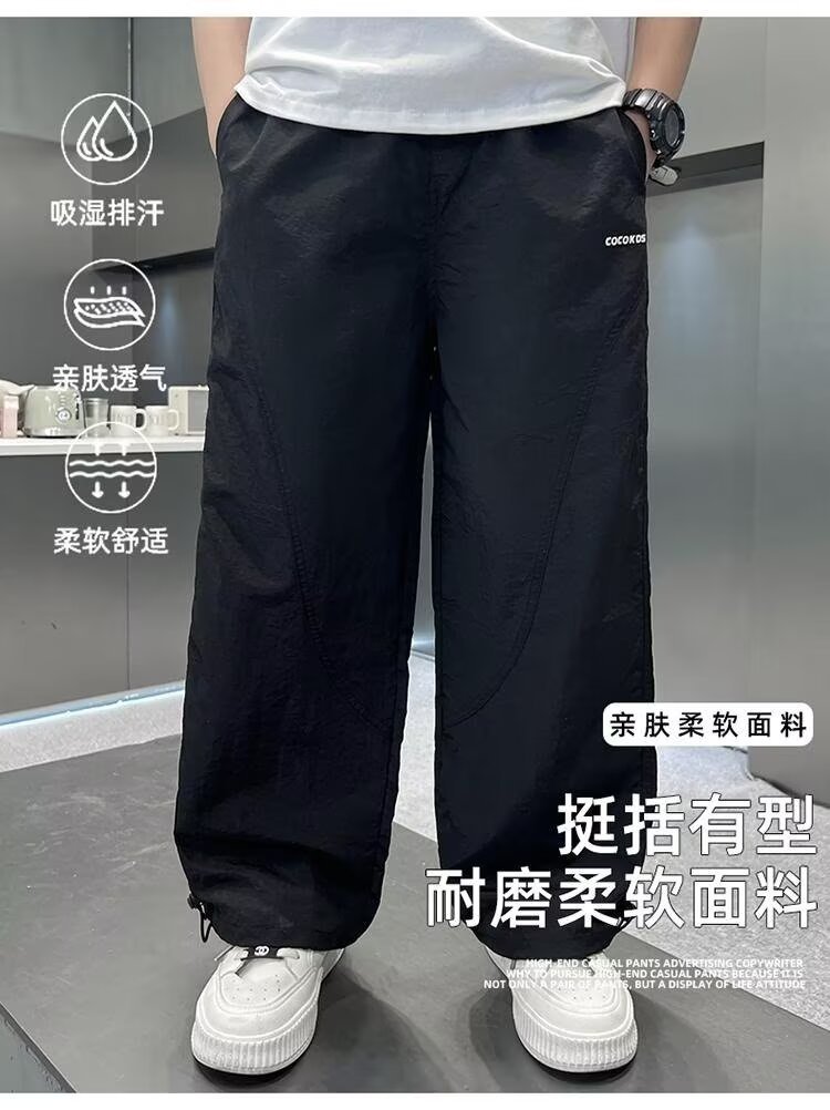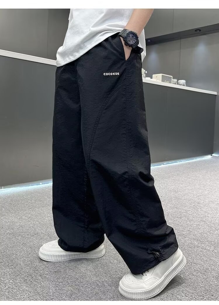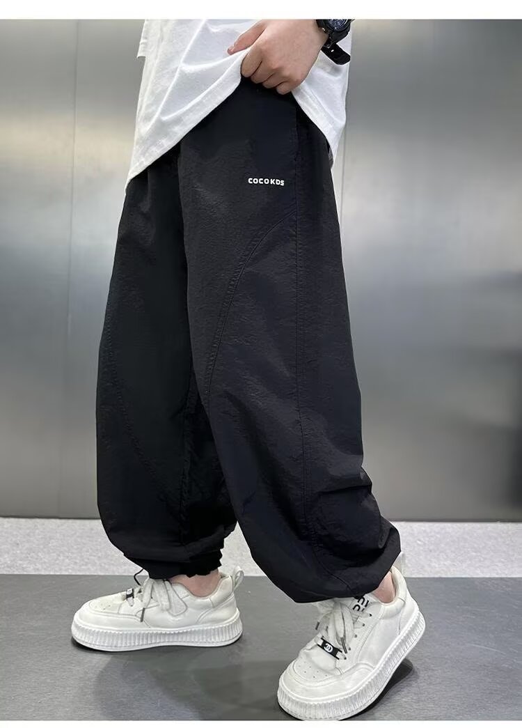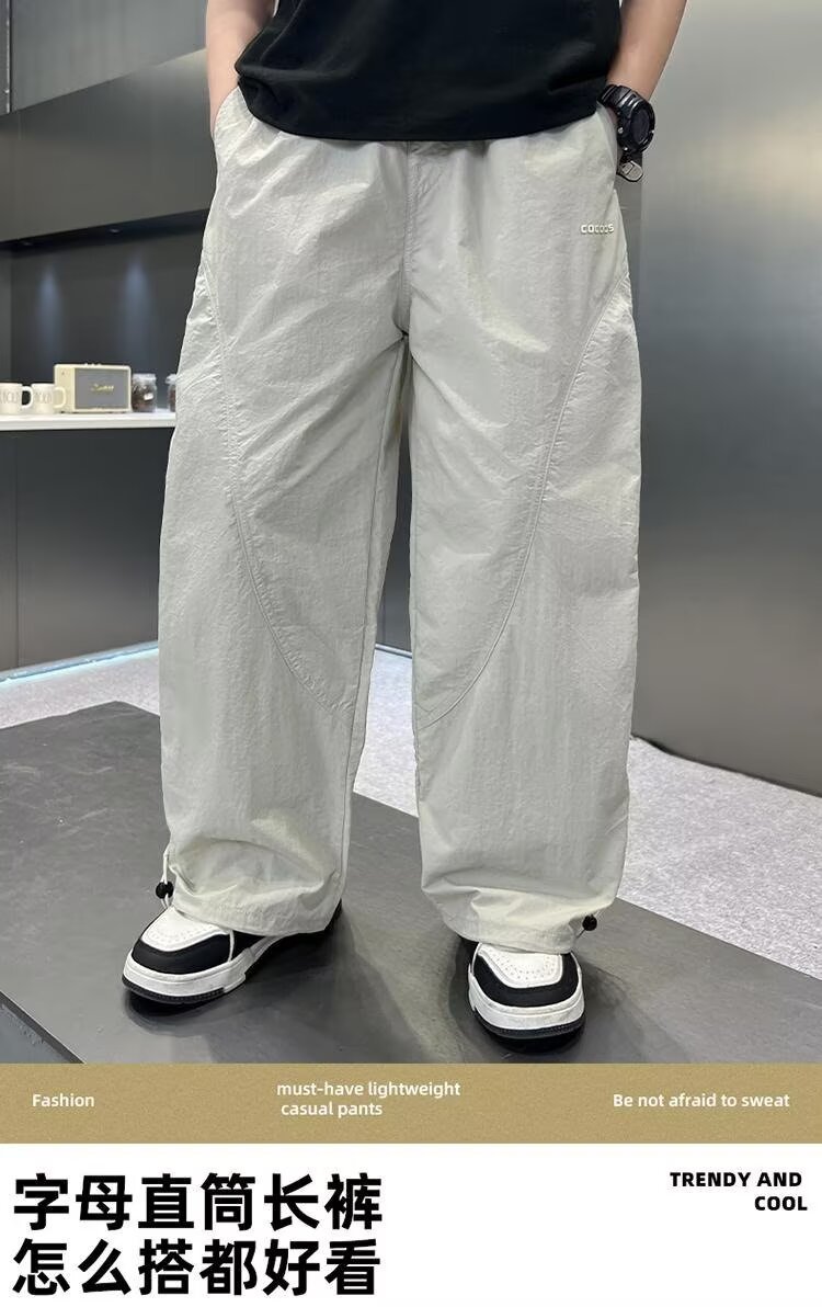 남자들의 여름 모기 방지 바지 2025 여름 새로운 중대형 어린이 잘 생긴 얇은 스포츠 바지 캐주얼 빠른 건조 긴 바지