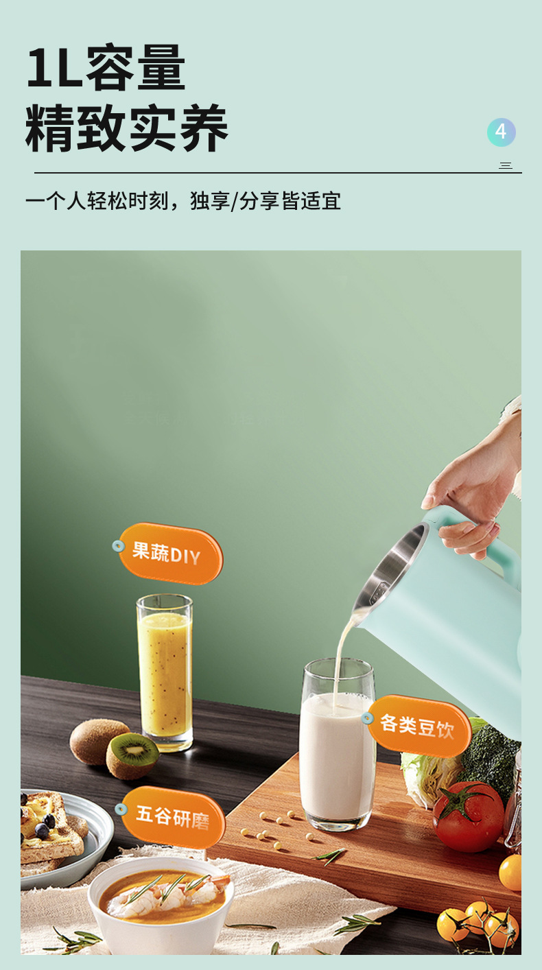 1000ml 두유 기계 미니 가정용 필터 프리 다기능 완전 자동 예약 벽 깨기 주스 기계스토어 가기