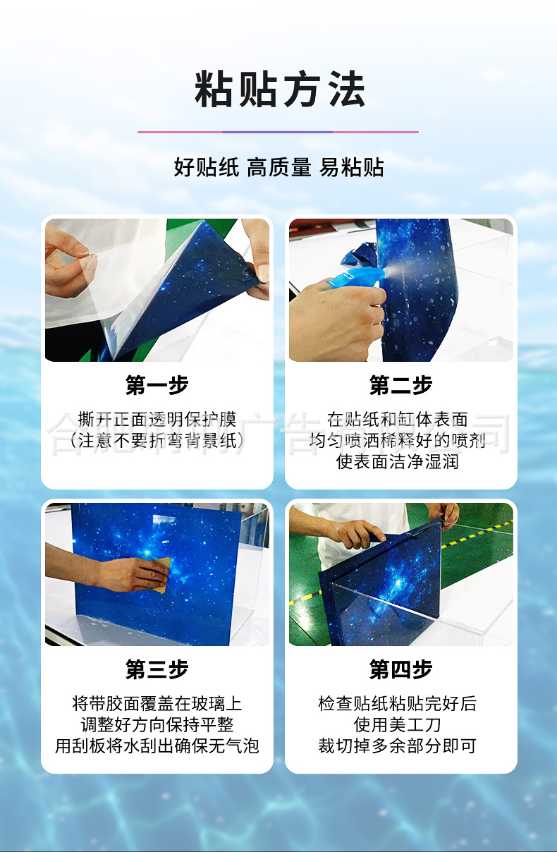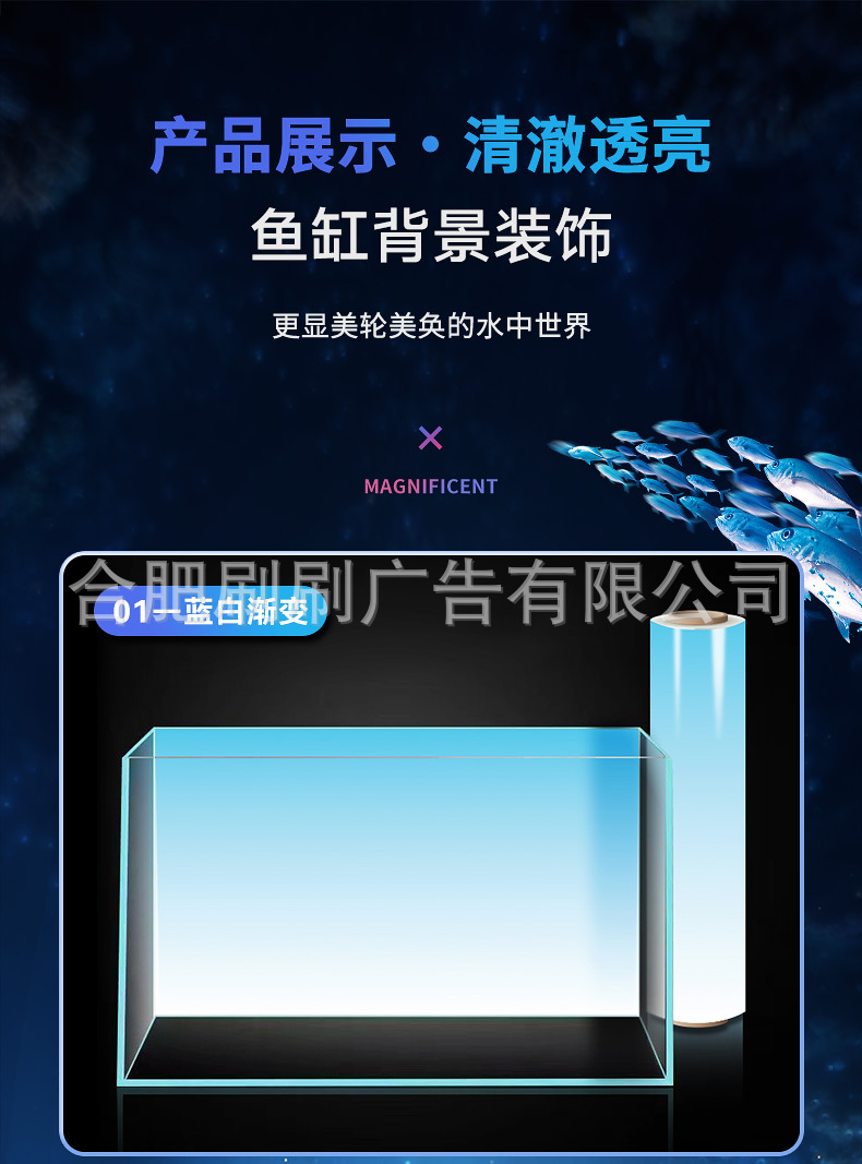물고기 탱크 배경 스티커 HD 파란색 흰색 파란색 흰색 그라디언트 조경 수족관 소스 공장 장식 그림 도매스토어 가기