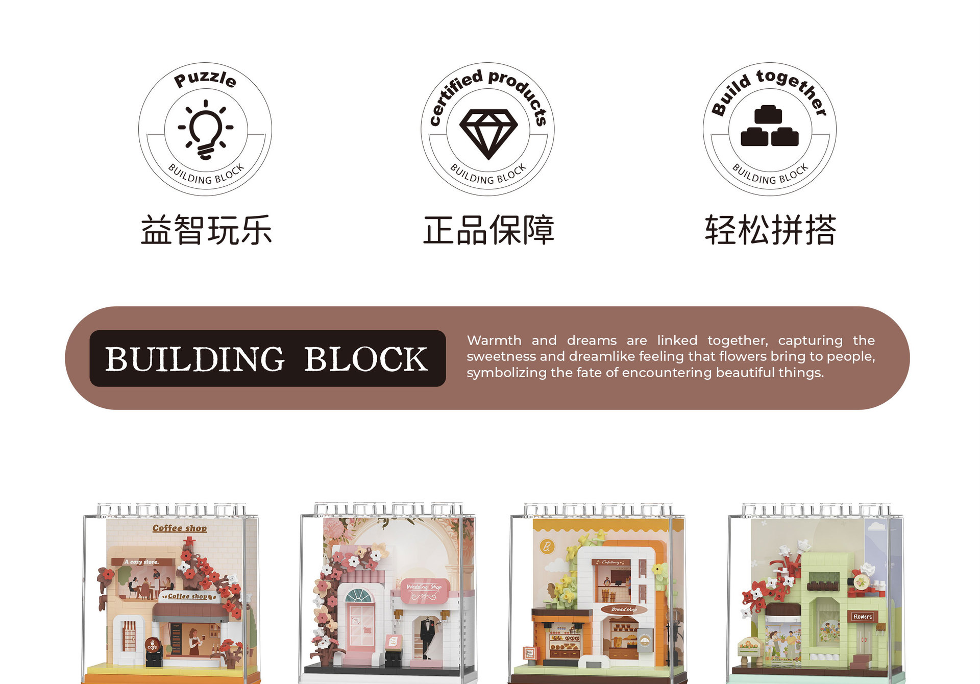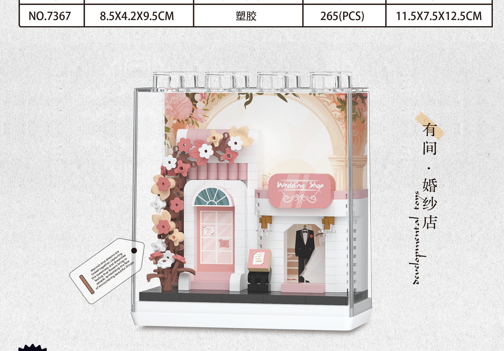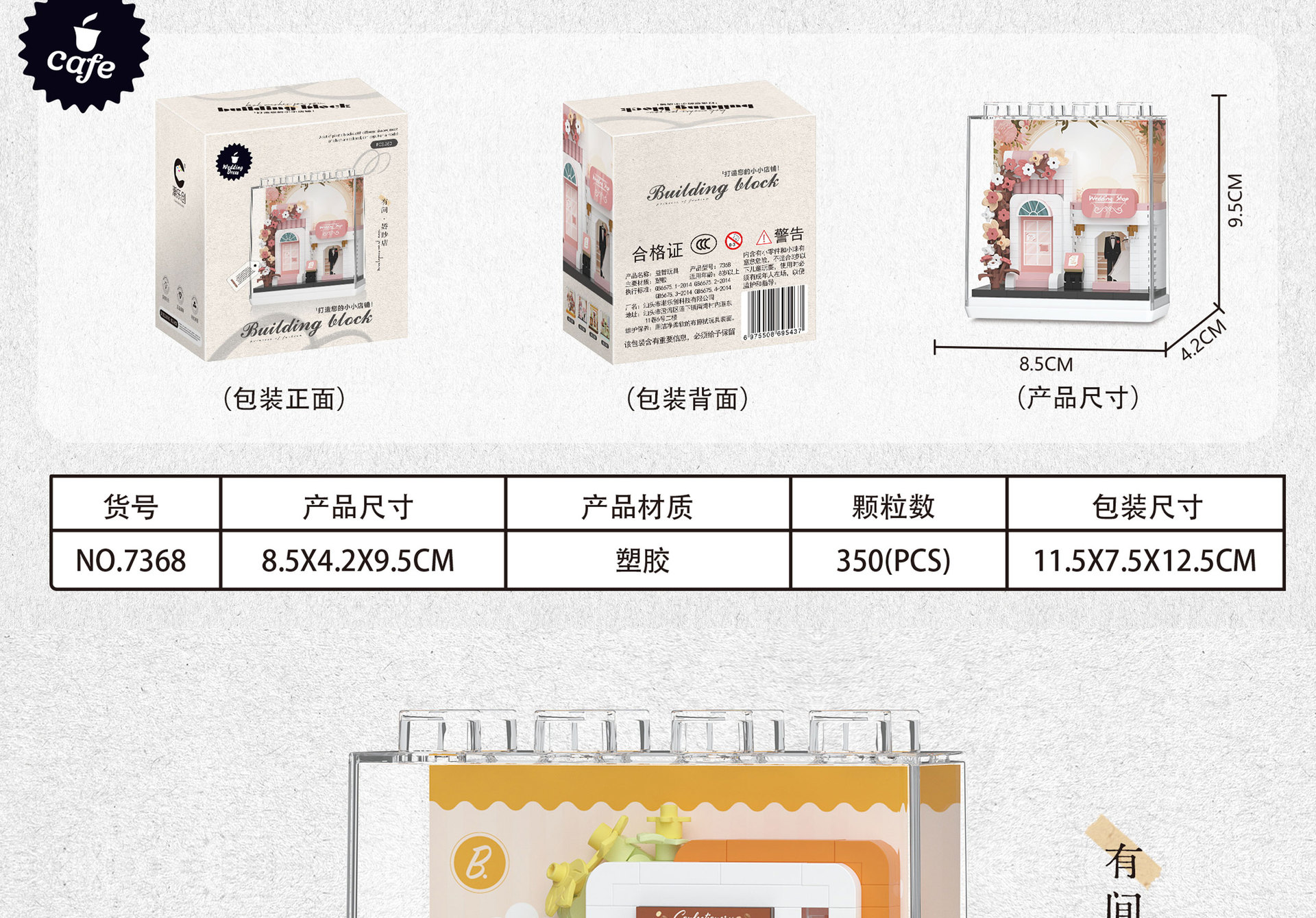 Chao Le Chuang 마이크로 입자 레저 플러그인 빌딩 블록 장난감 7367-7370 에는 작은 상점 시리즈 도매 세대가 있습니다.