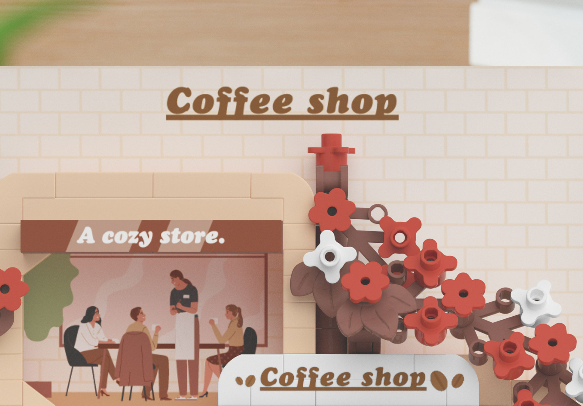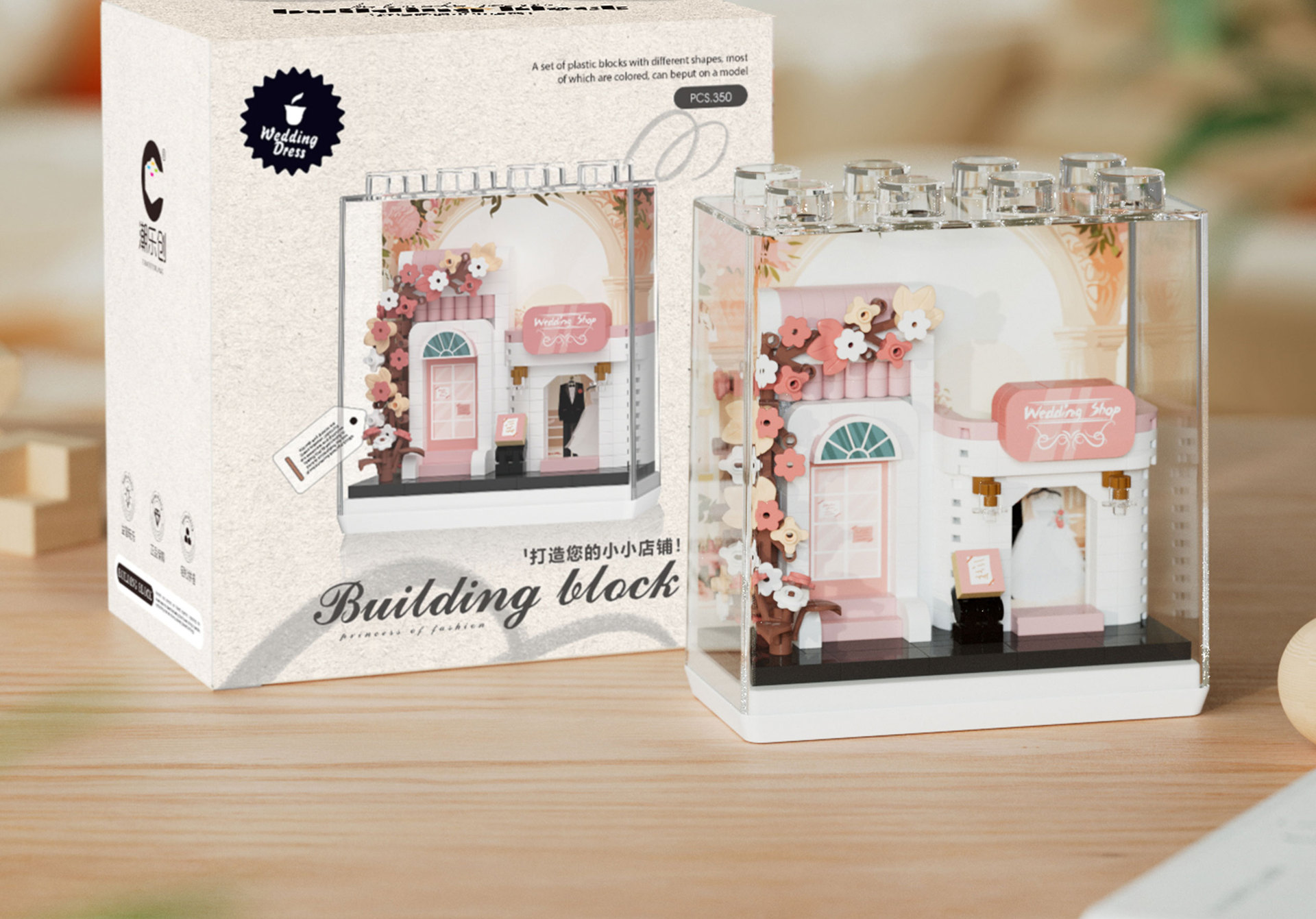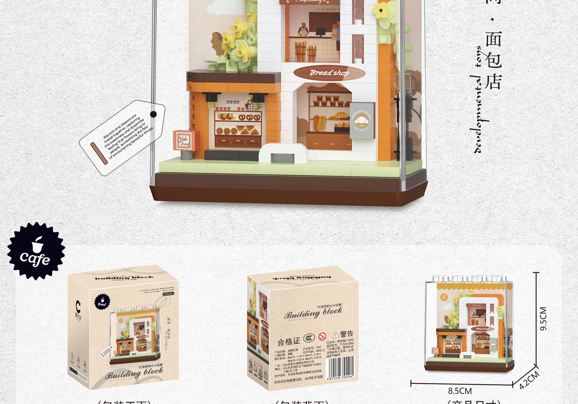 Chao Le Chuang 마이크로 입자 레저 플러그인 빌딩 블록 장난감 7367-7370 에는 작은 상점 시리즈 도매 세대가 있습니다.