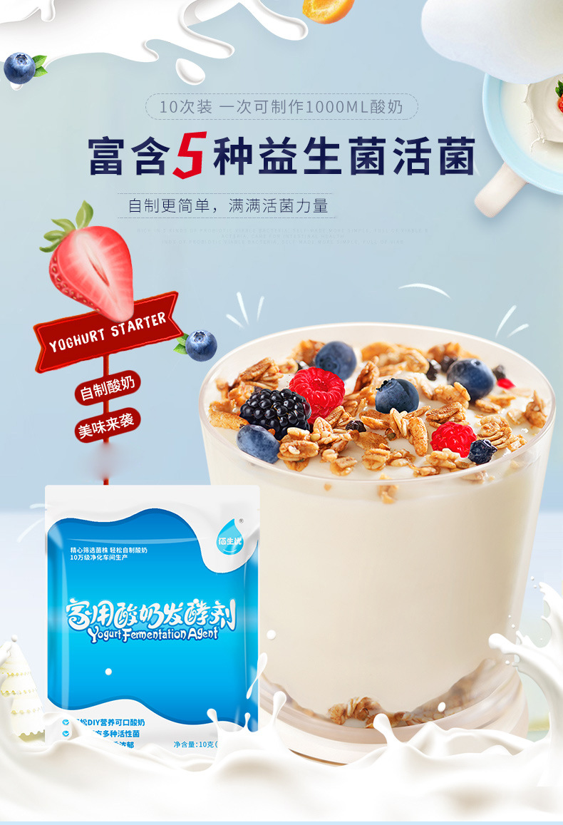 Baishengyou 5 가정용 요구르트 스타터 DIY 수제 분말 효모 분말 유산균 요구르트 기계 패키지스토어 가기
