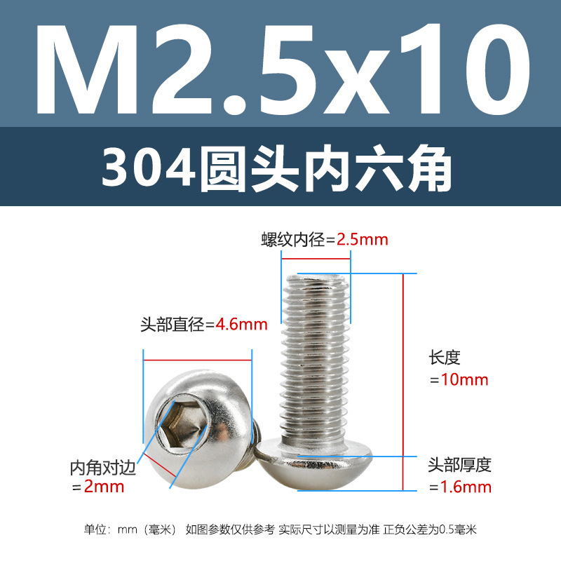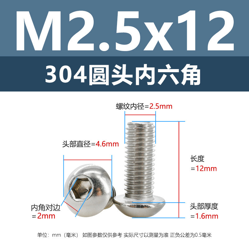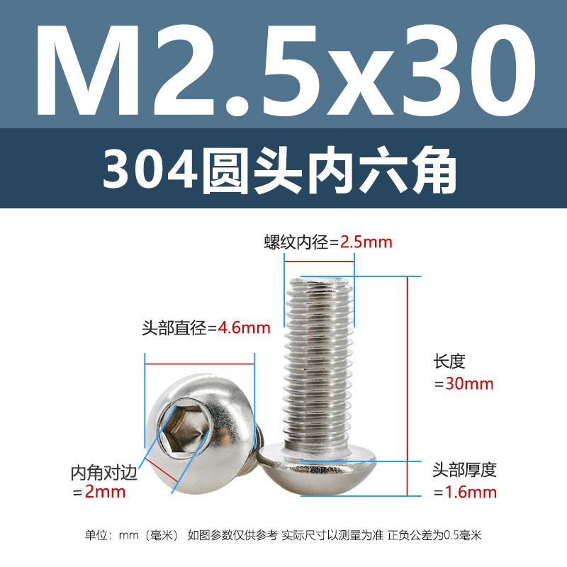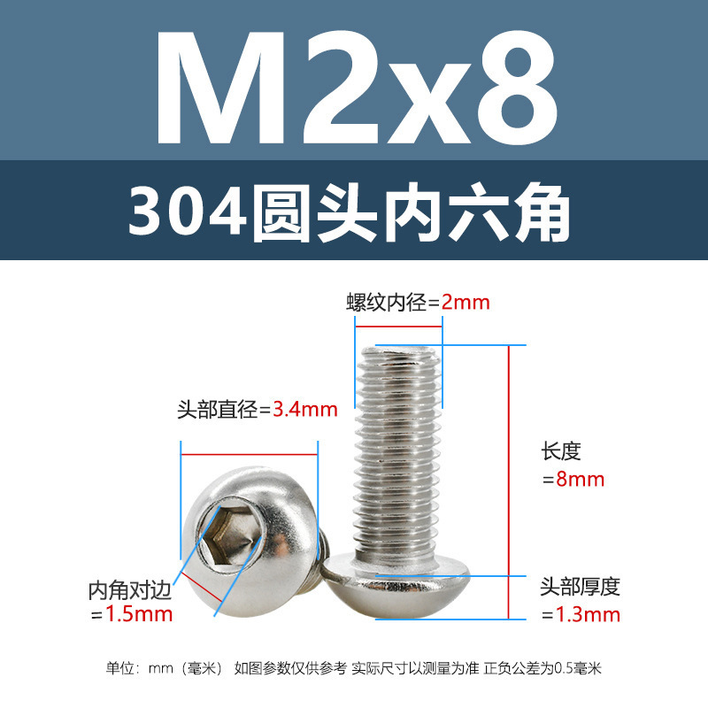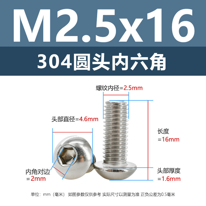304 스테인레스 스틸 팬 헤드 육각형 소켓 볼트 버섯 위안 컵 스크류 M1.6M12 라운드 헤드 육각형 소켓 스크류스토어 가기