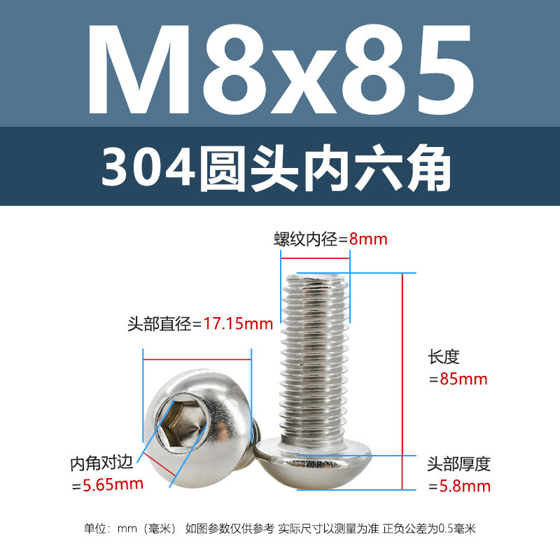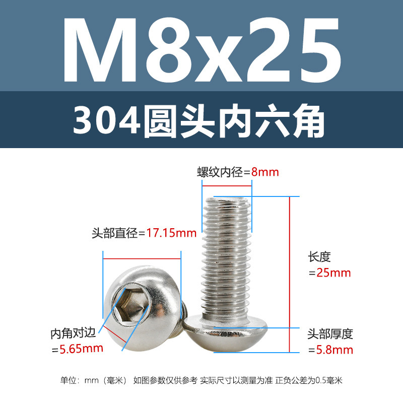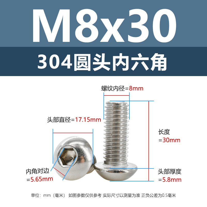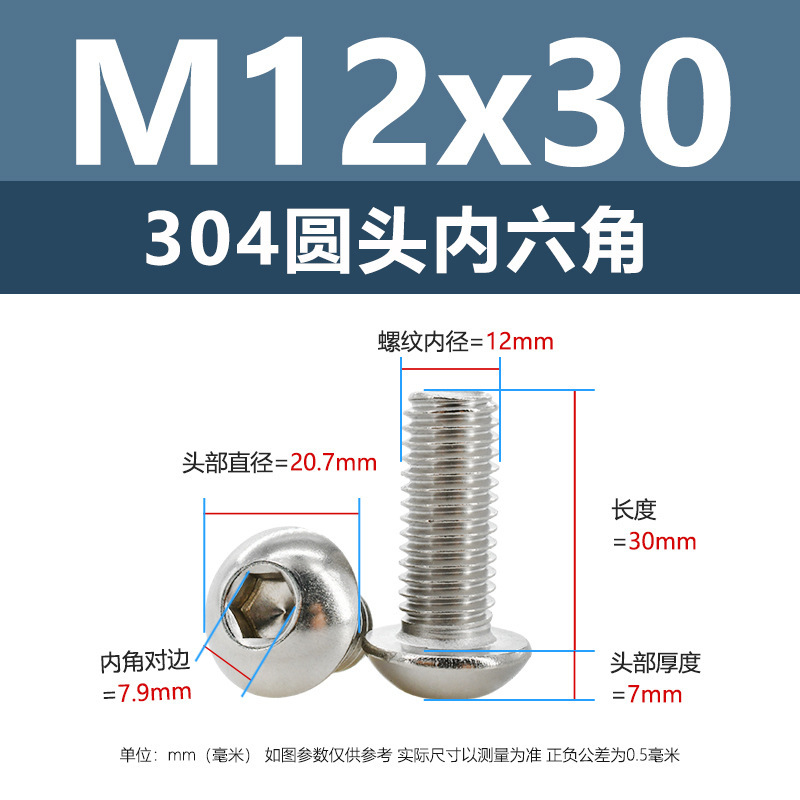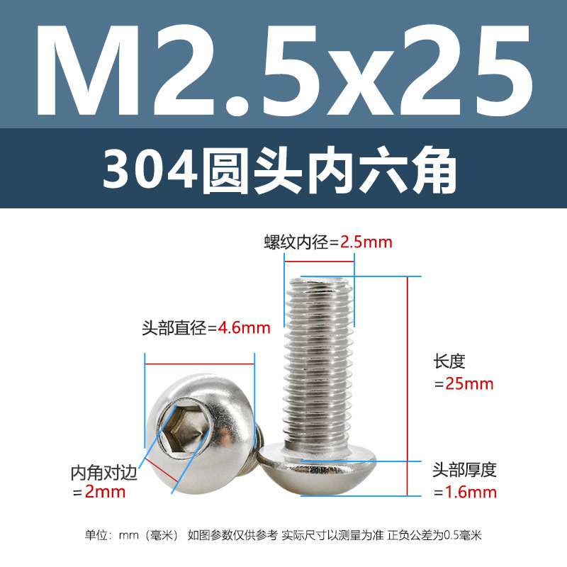 304 스테인레스 스틸 팬 헤드 육각형 소켓 볼트 버섯 위안 컵 스크류 M1.6M12 라운드 헤드 육각형 소켓 스크류스토어 가기