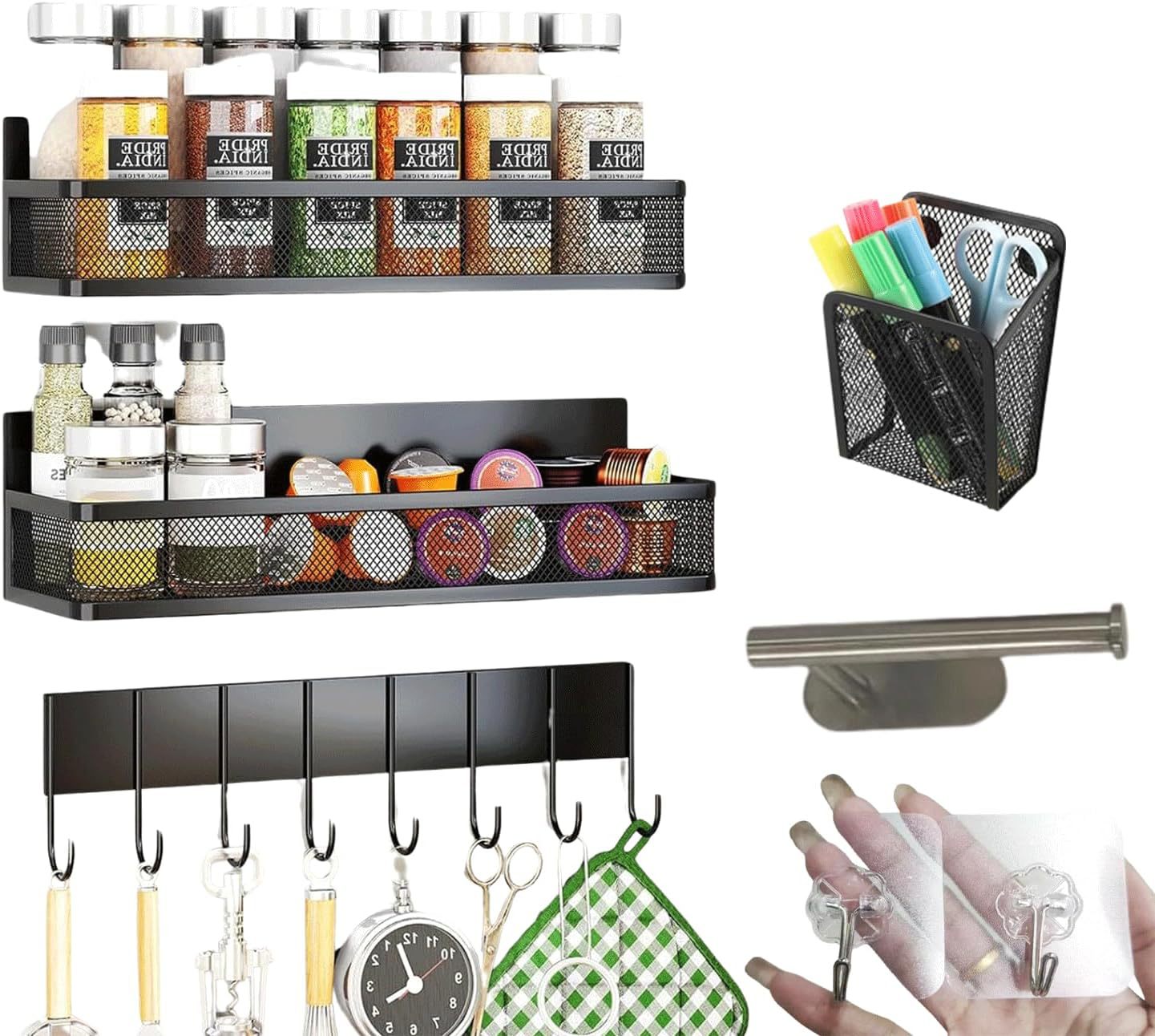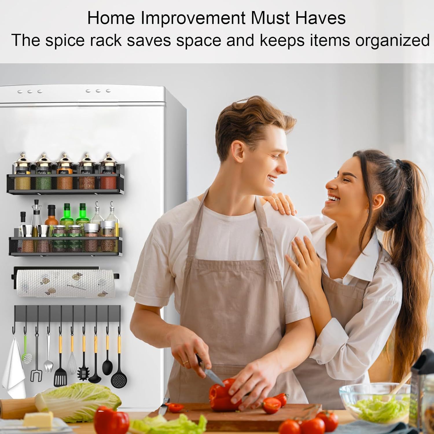 구멍이 없는 자기 냉장고 보관 랙 다기능 측면 조미료 걸이 주방 보관 랙