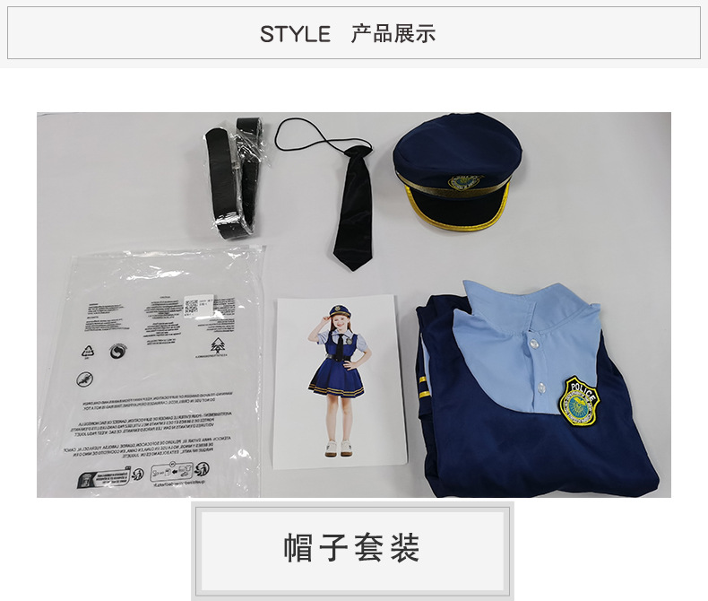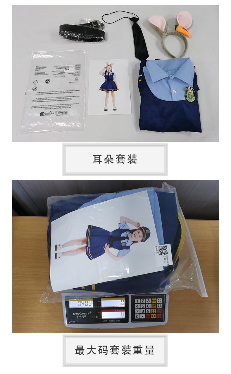 这款有两个套装一个搭配帽子,一个搭配兔子耳朵。玩具手kao,对讲机和警示牌都不包含在内哦!