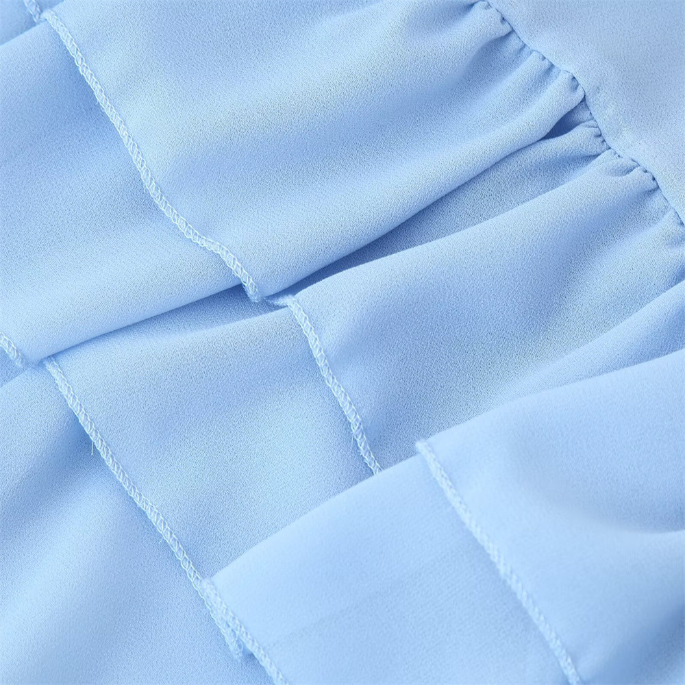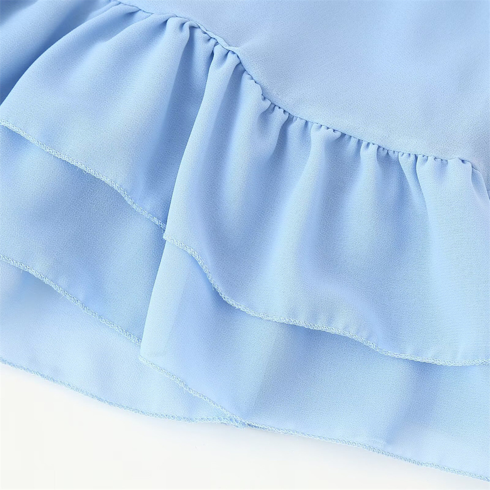 2025년 새로운 여름 스타일 유럽과 미국 스타일의 세련된 더블 레이어 러플 솔리드 컬러 드레스