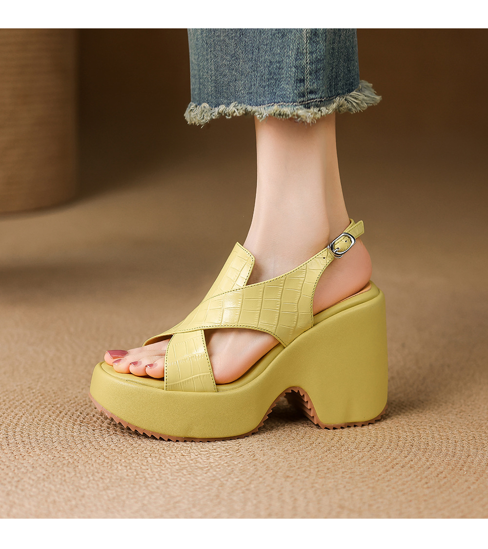 10CM 슈퍼 하이힐 플랫폼 플랫폼 플랫폼 샌들 2025 여름 새로운 오픈 발가락 두꺼운 힐 캐주얼 높이 증가 여성 신발스토어 가기