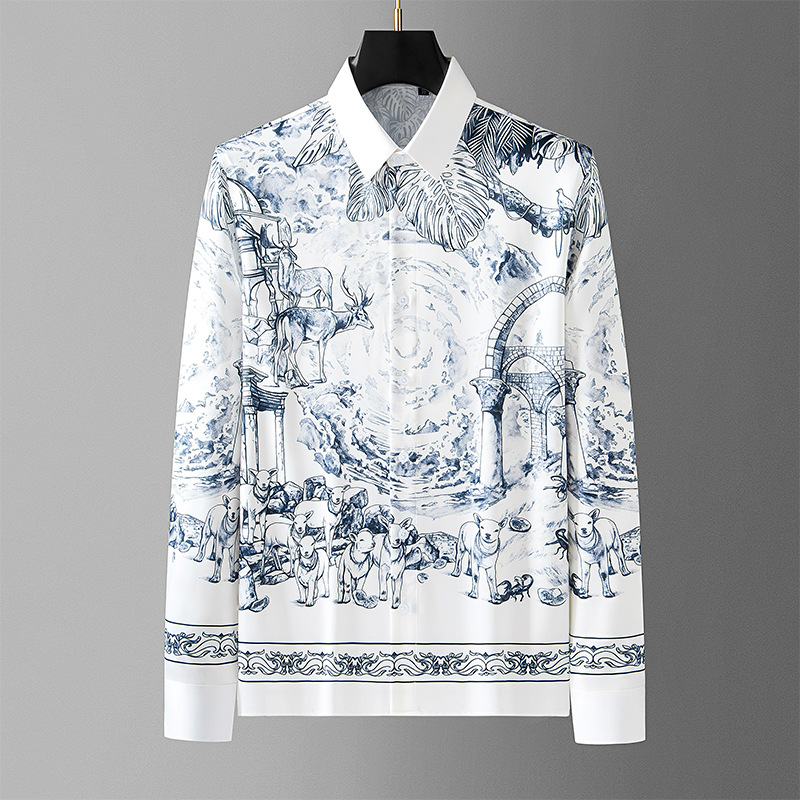 2025 고급 새로운 디지털 인쇄 남성용 비 다림질 긴 소매 셔츠 공장 직접 머리카락 세대스토어 가기