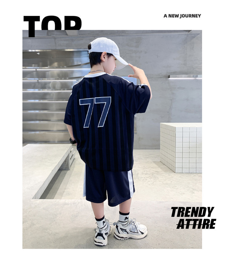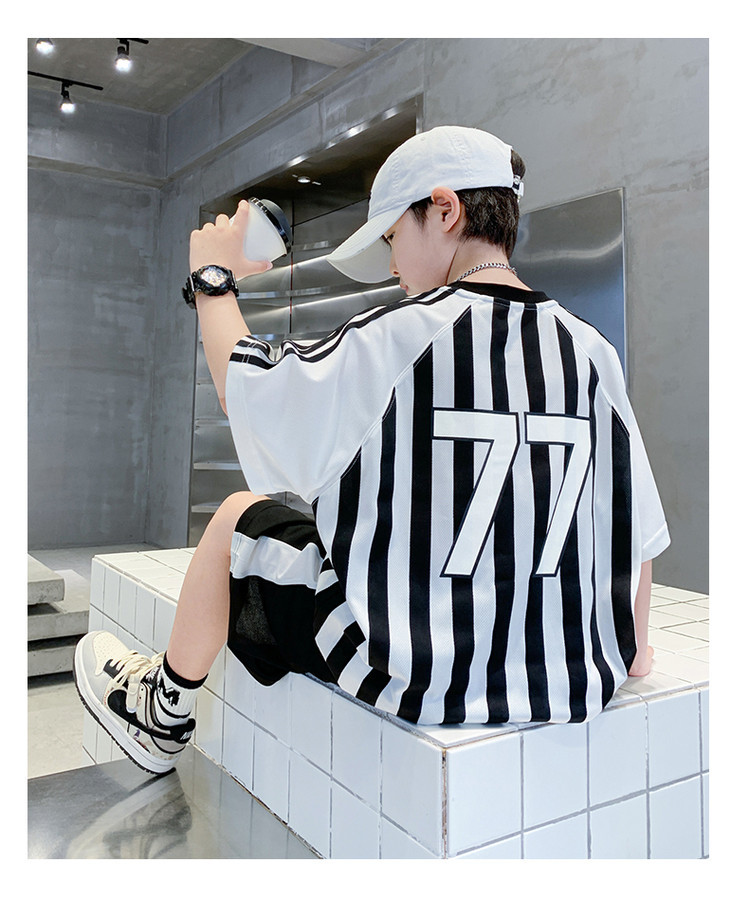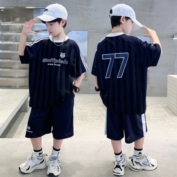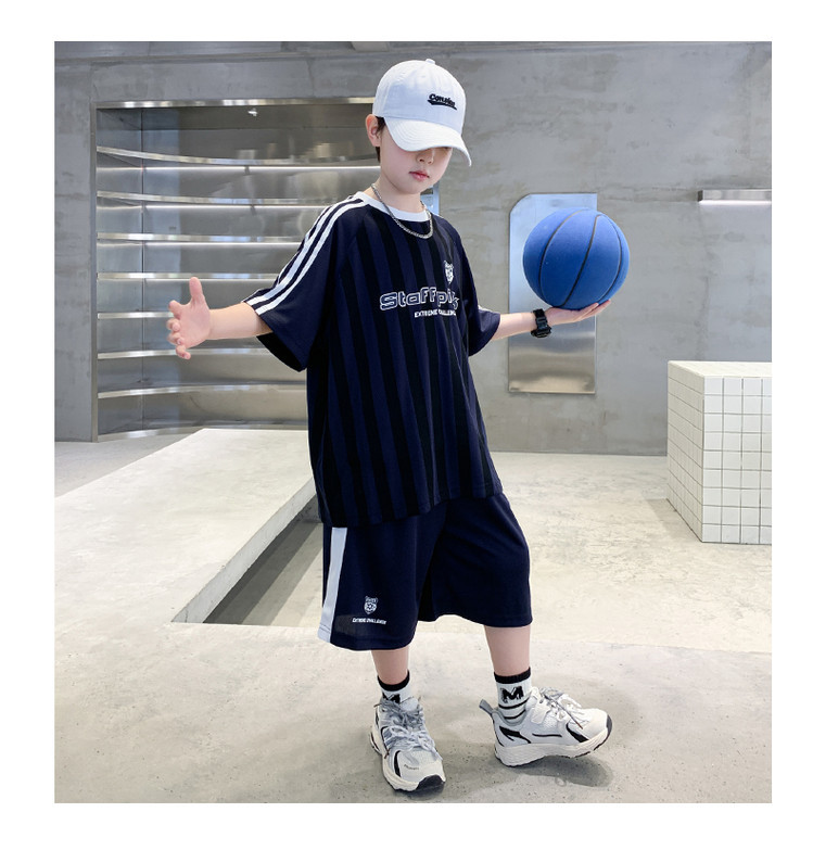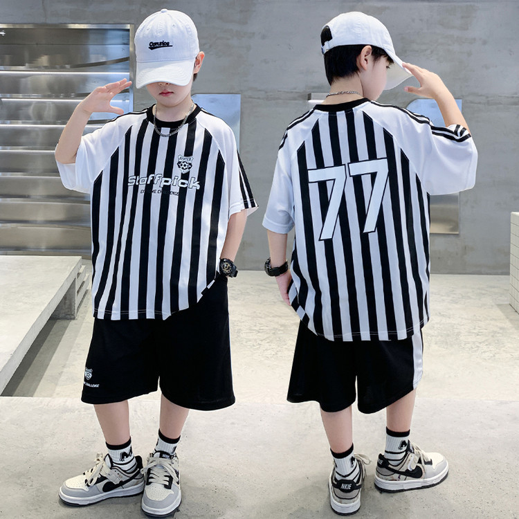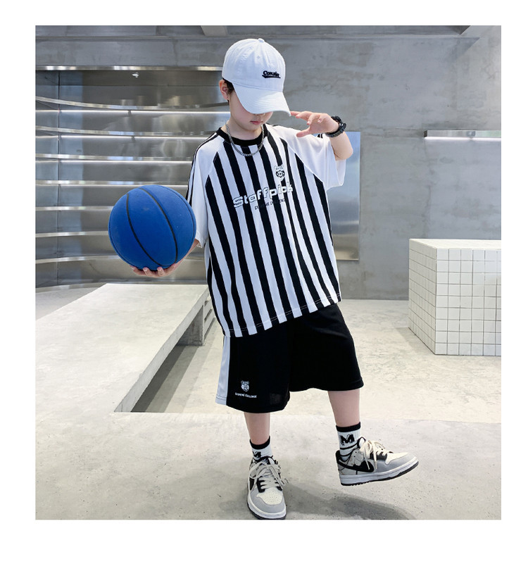 소년 농구 유니폼 세트 여름 어린이 멋진 반팔 반바지 세로 메쉬 속건 스포츠 투피스 세트 도매
