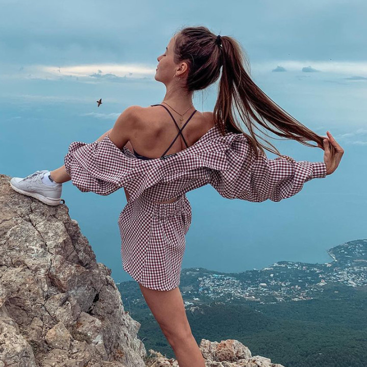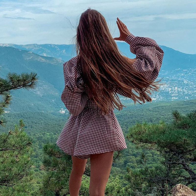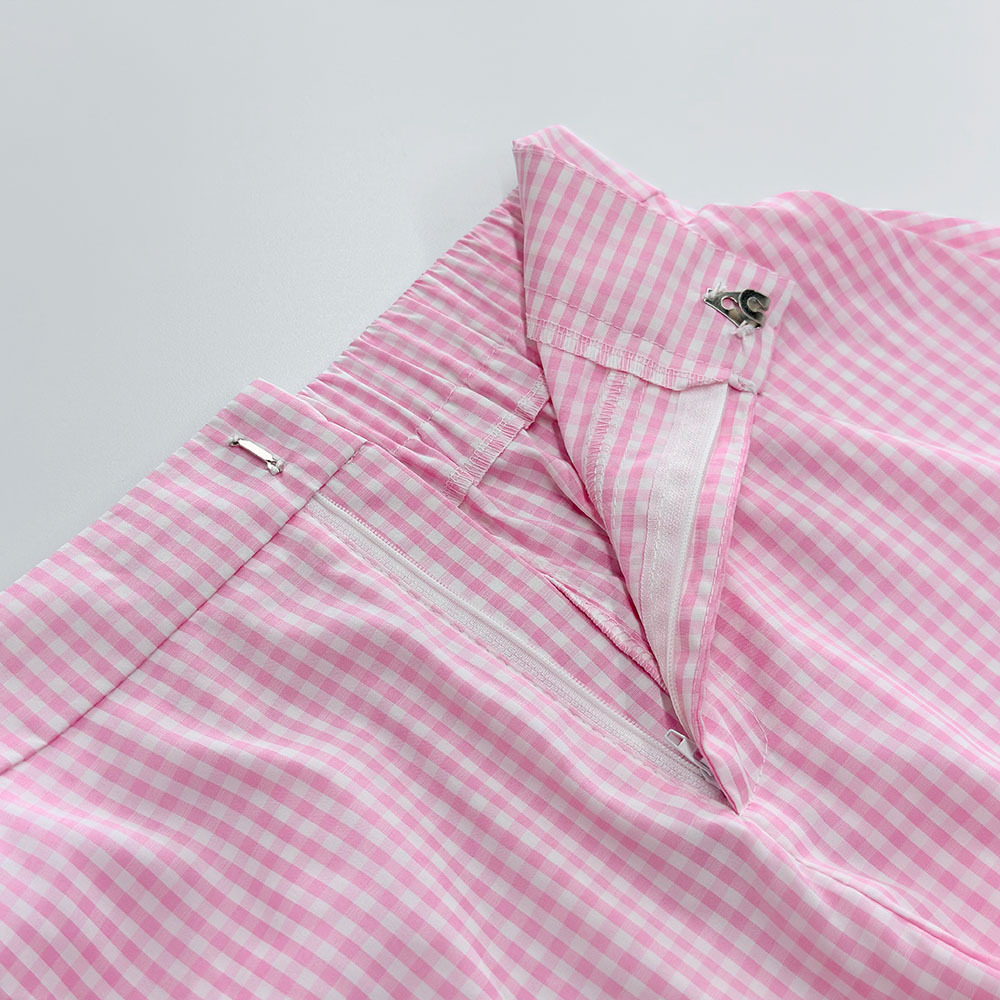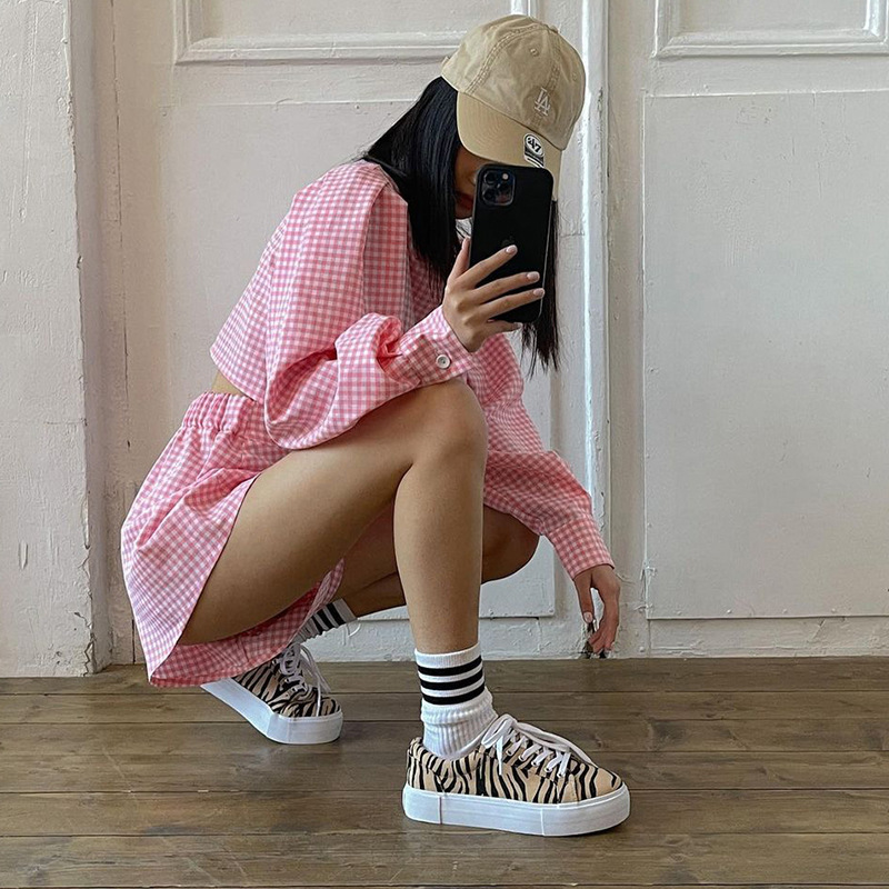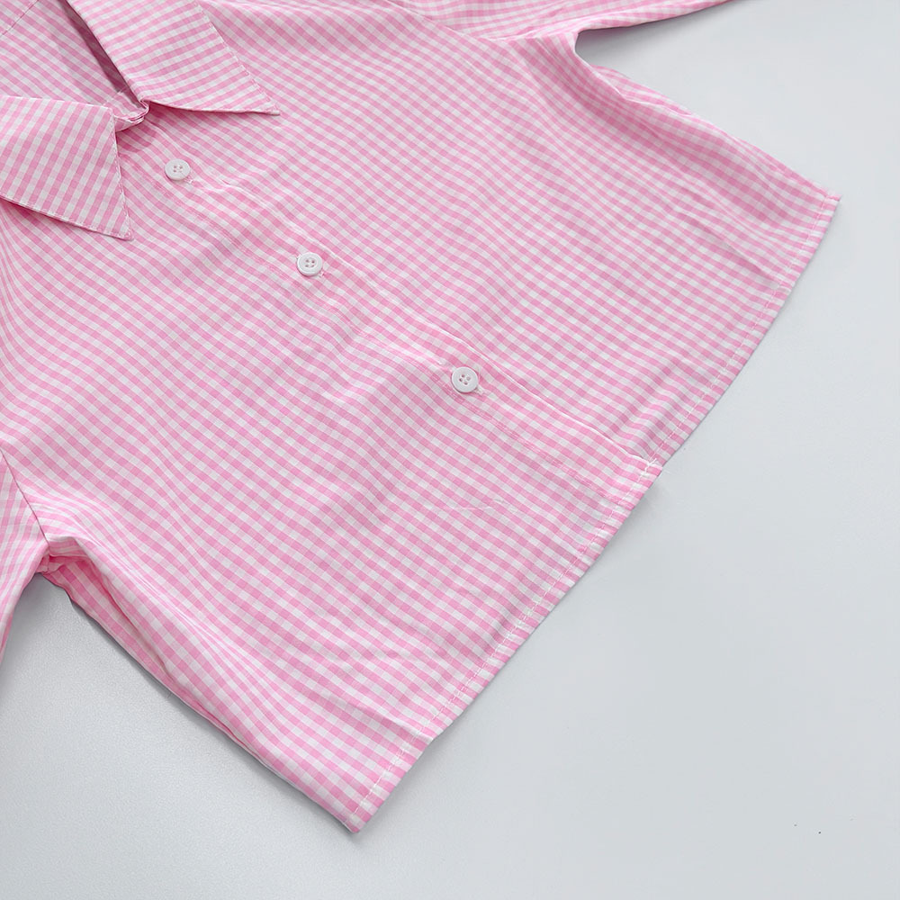 유럽과 미국의 새로운 2025 봄 캐주얼 달콤한 스타일 격자 무늬 긴 소매 셔츠 반바지 느슨한 세트 여성 국경 도매스토어 가기