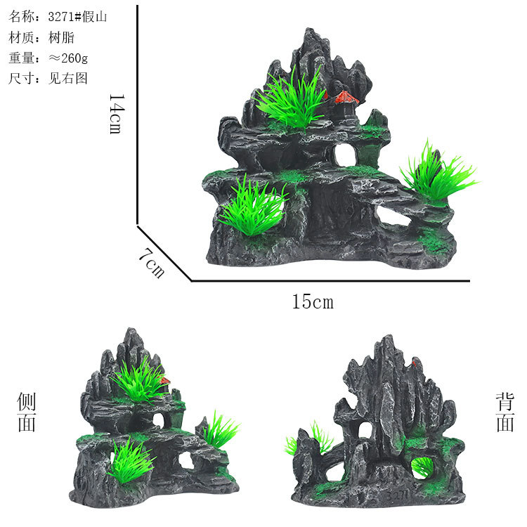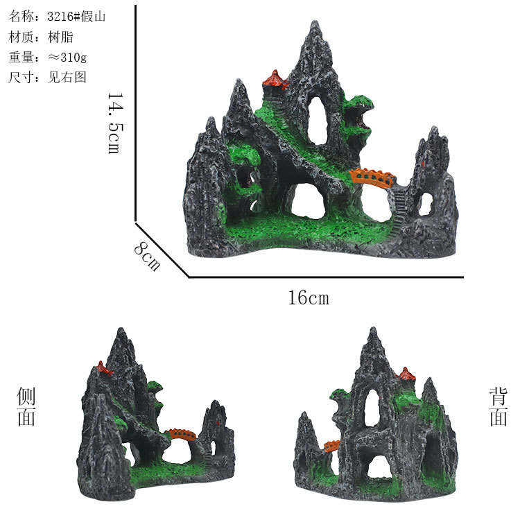 바위 성 장식품 물고기 탱크 바위 돌 조경 물고기와 새우 쉼터 수족관 장식 수지 시뮬레이션 세트