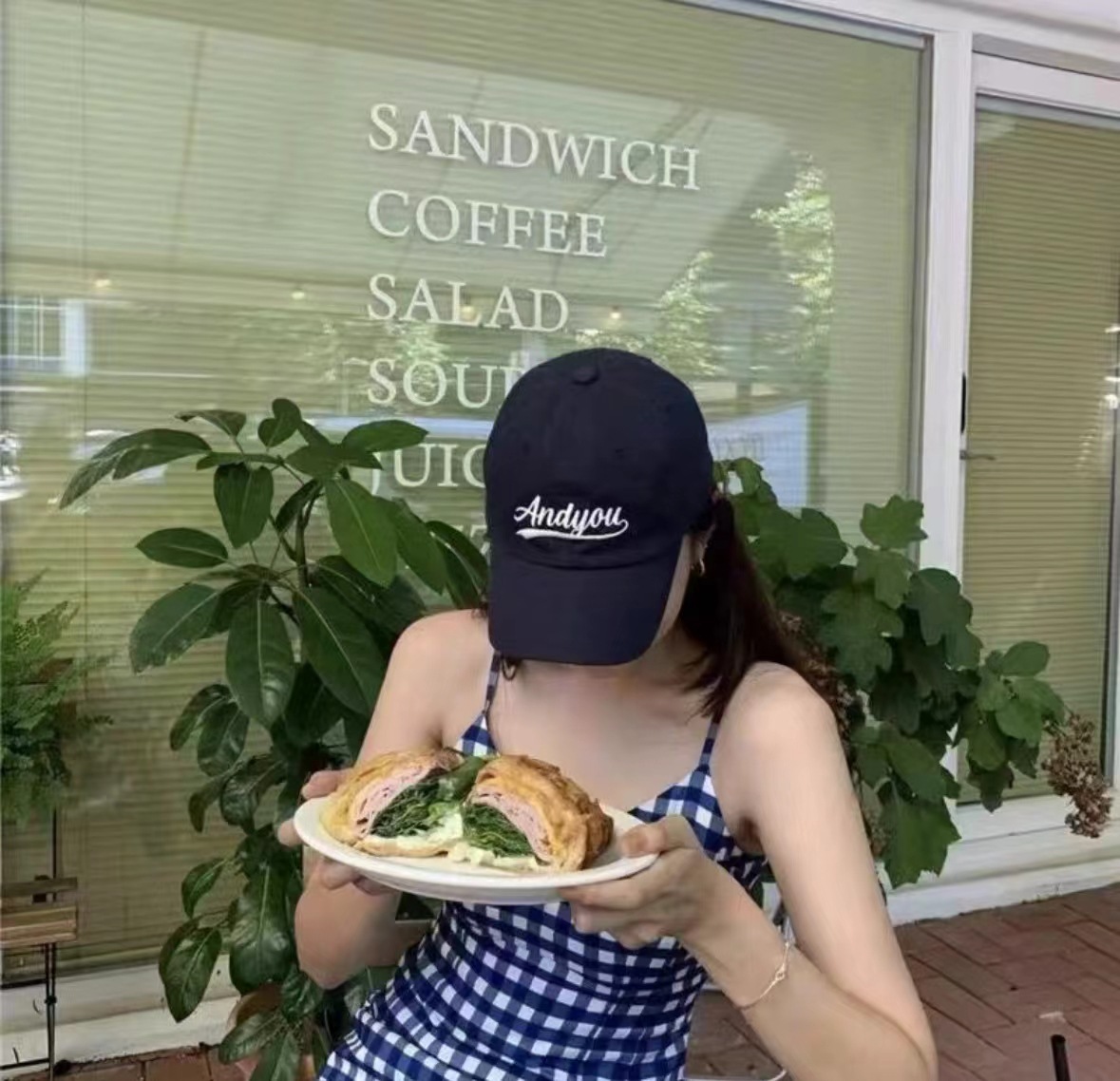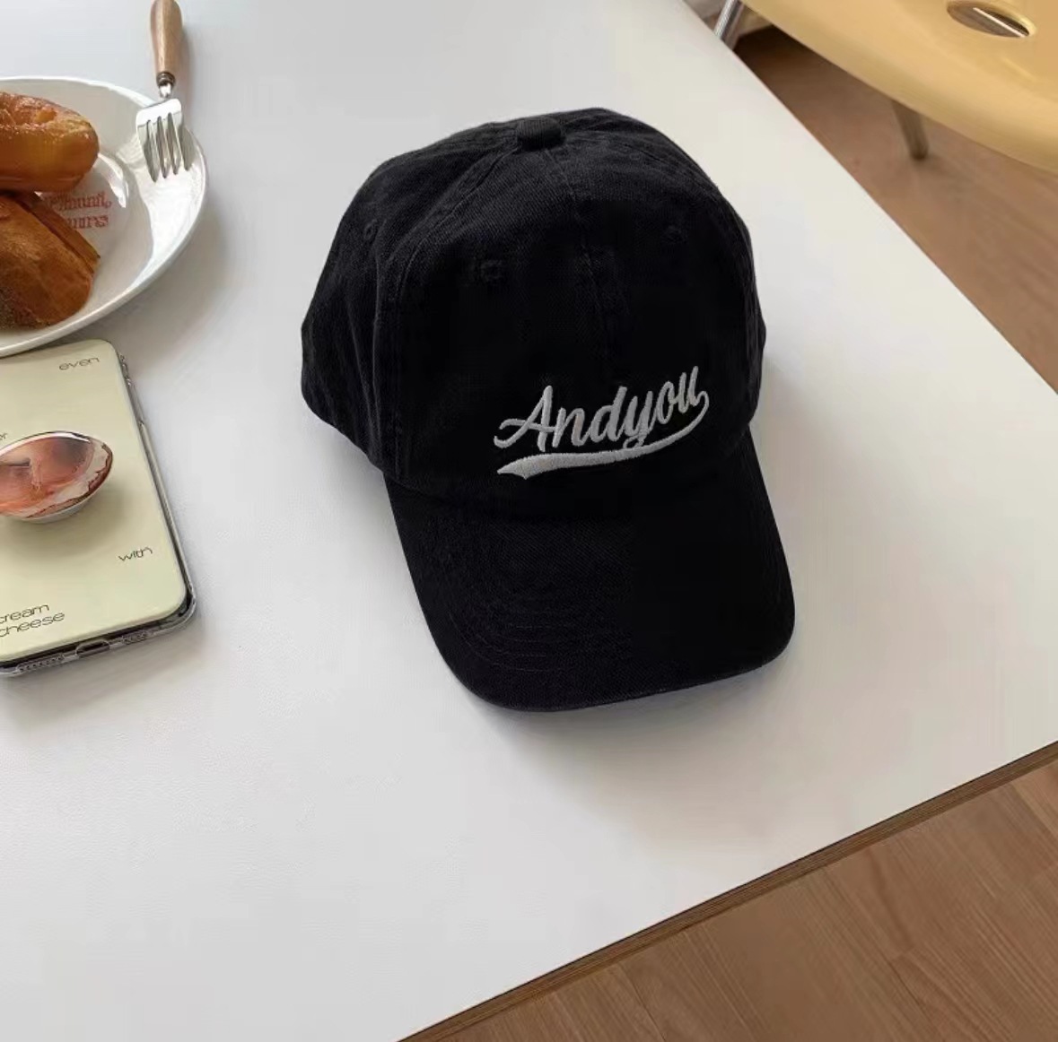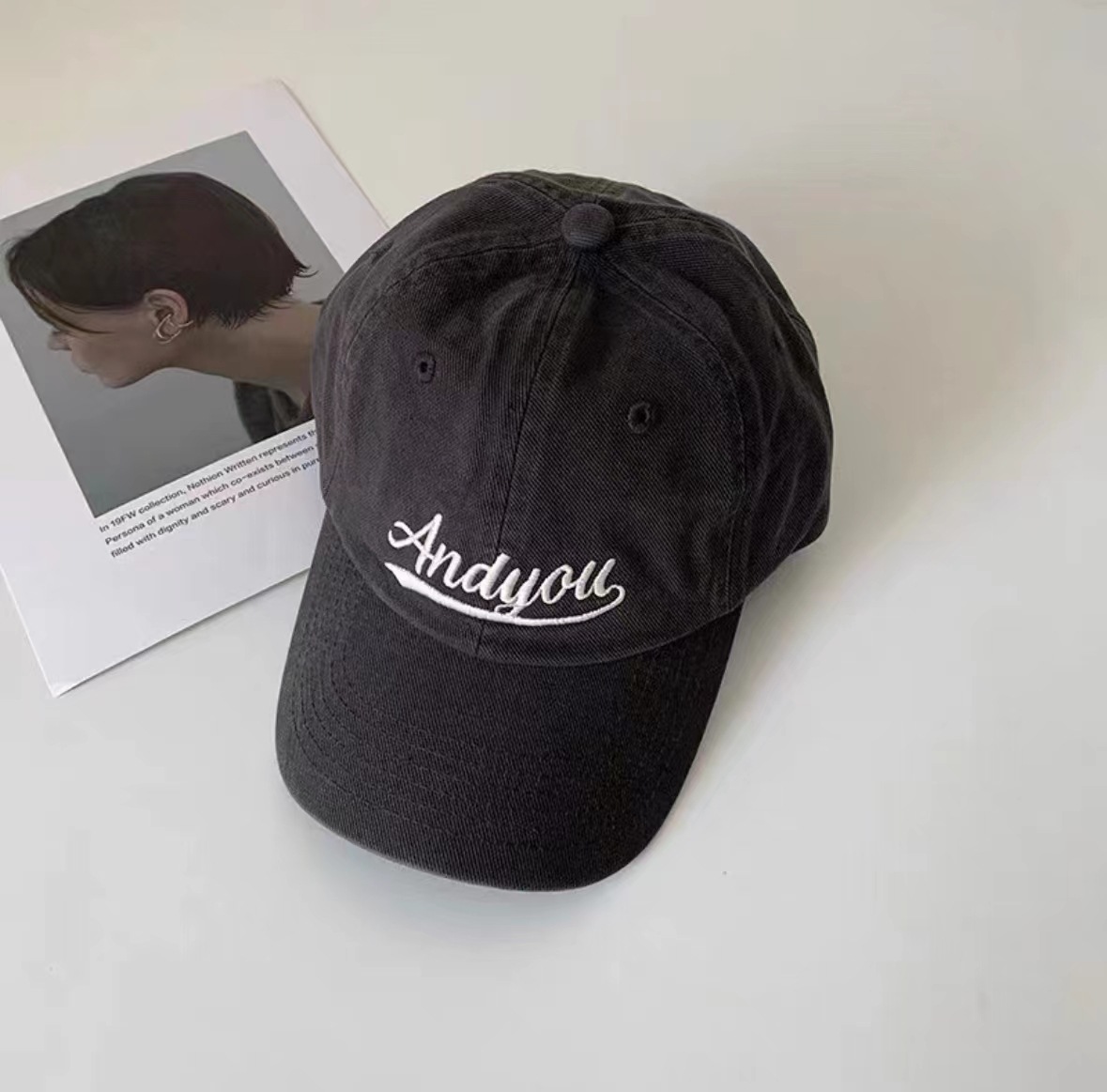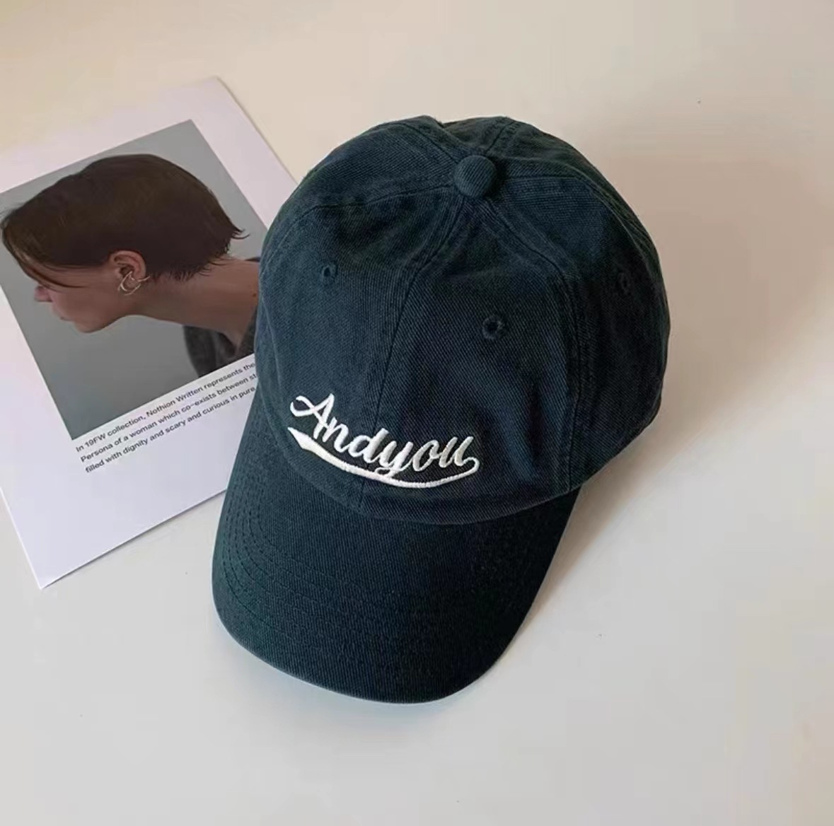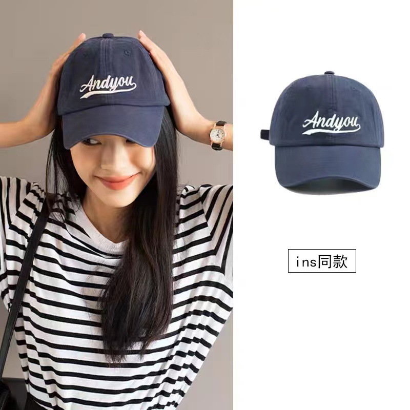 藏青色景甜IU李智恩同款Andyou字母韩国百搭遮阳鸭舌帽女棒球帽