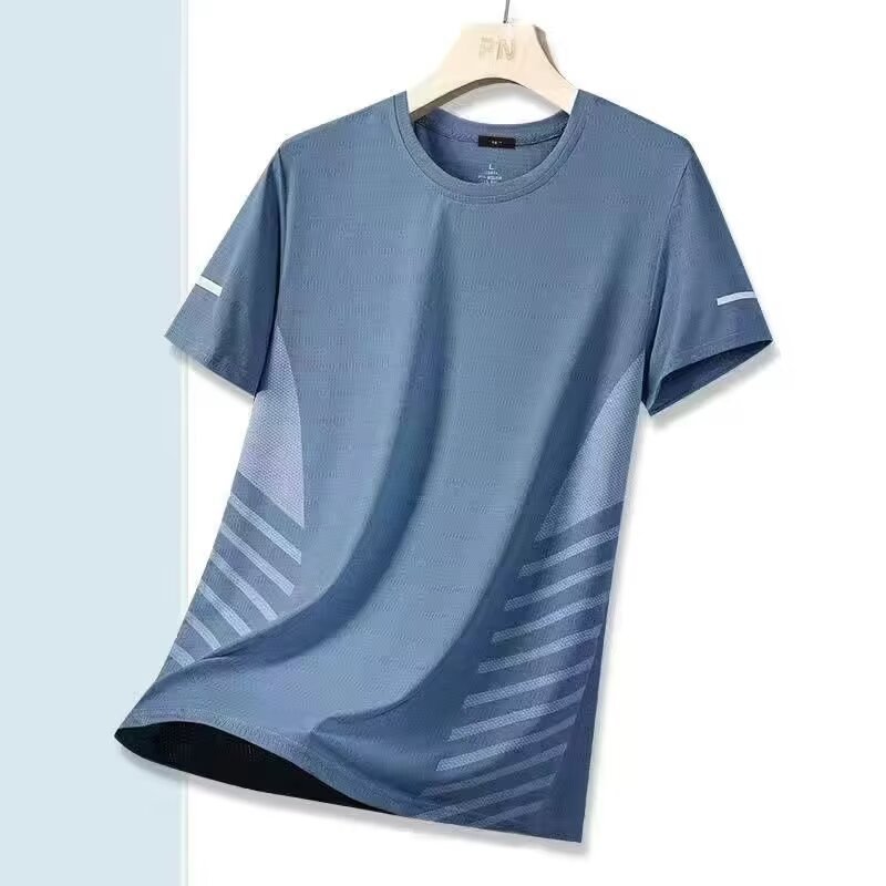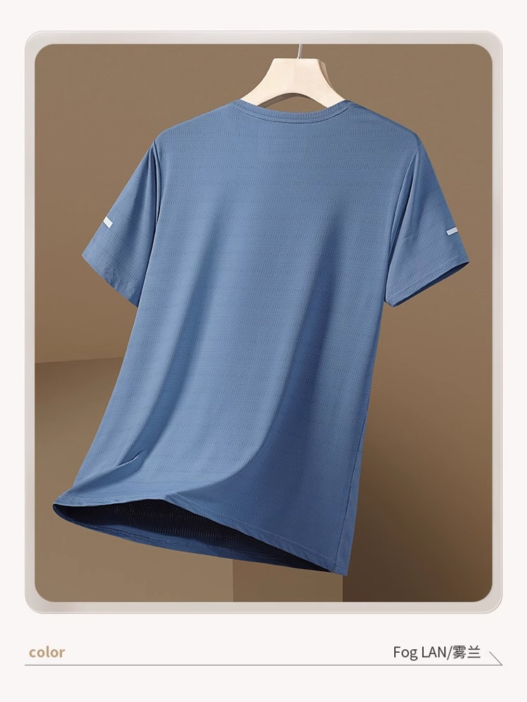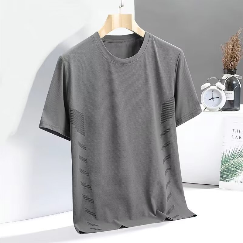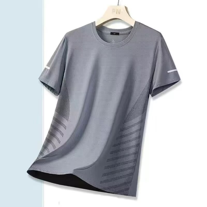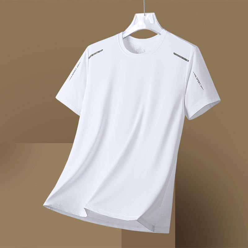 여름 아이스 실크 티셔츠 남자 라운드 넥 솔리드 컬러 퀵 건조 의류 반팔 남성 스포츠 느슨한 얇은 통기성 반팔 티셔츠스토어 가기