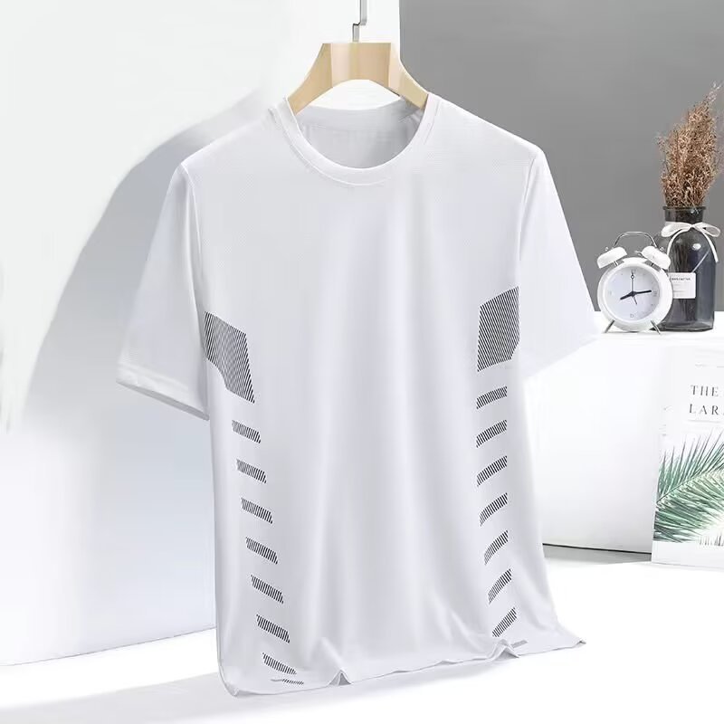 여름 아이스 실크 티셔츠 남자 라운드 넥 솔리드 컬러 퀵 건조 의류 반팔 남성 스포츠 느슨한 얇은 통기성 반팔 티셔츠
