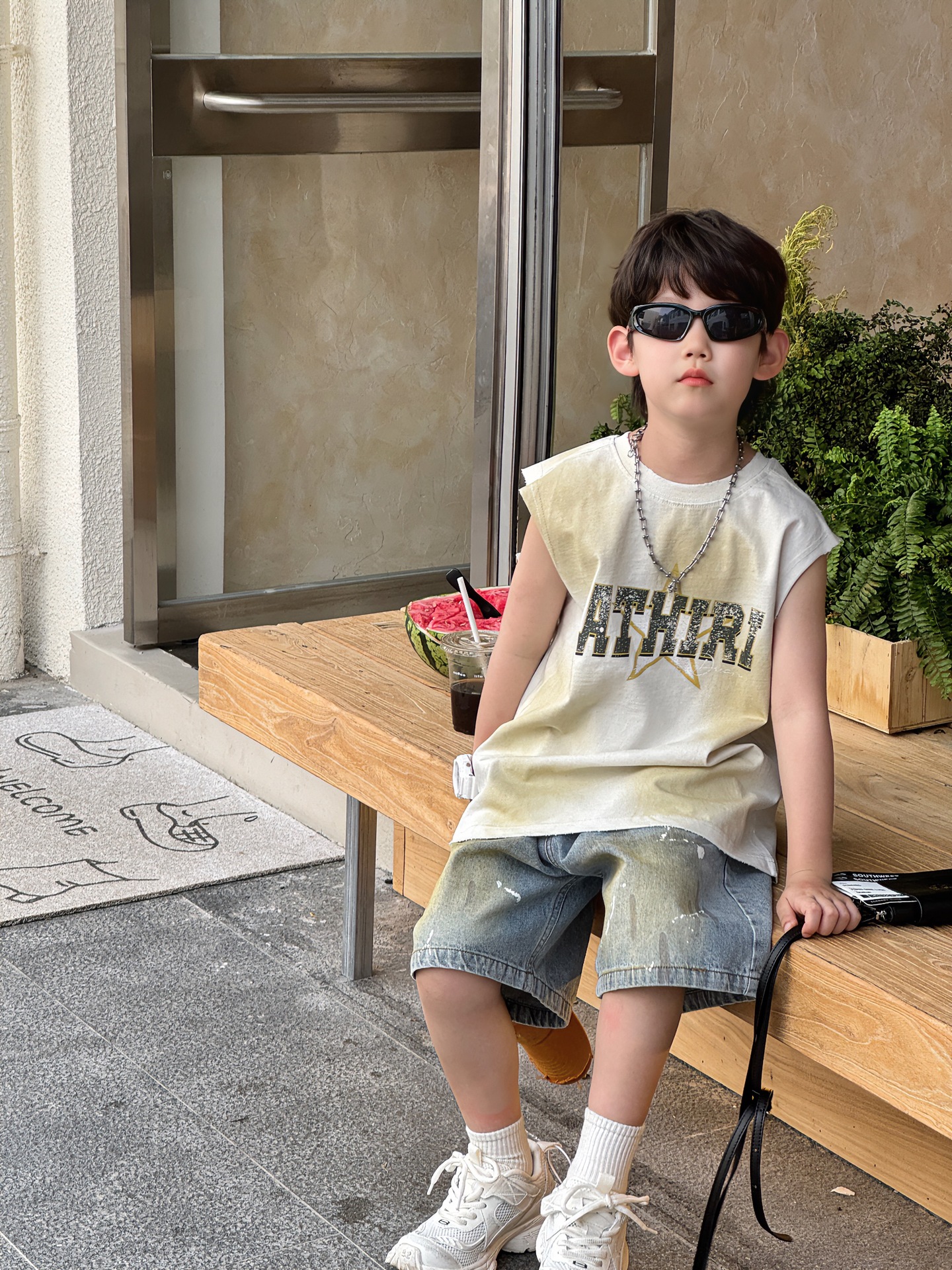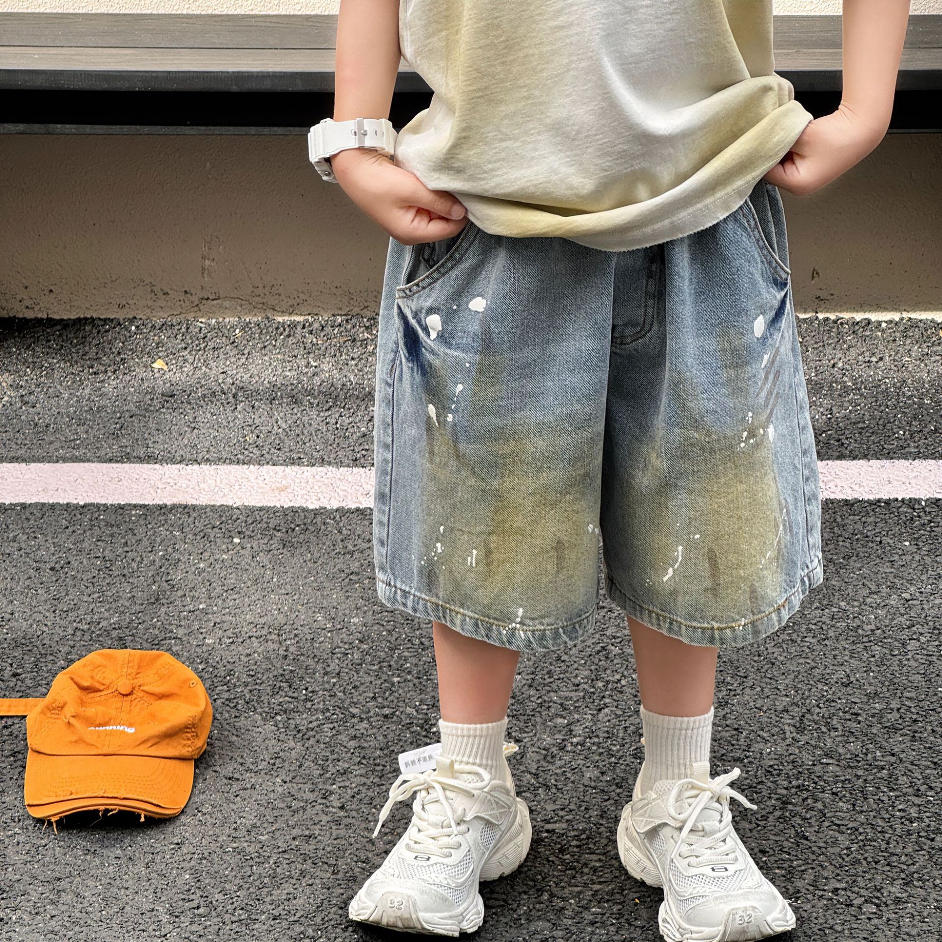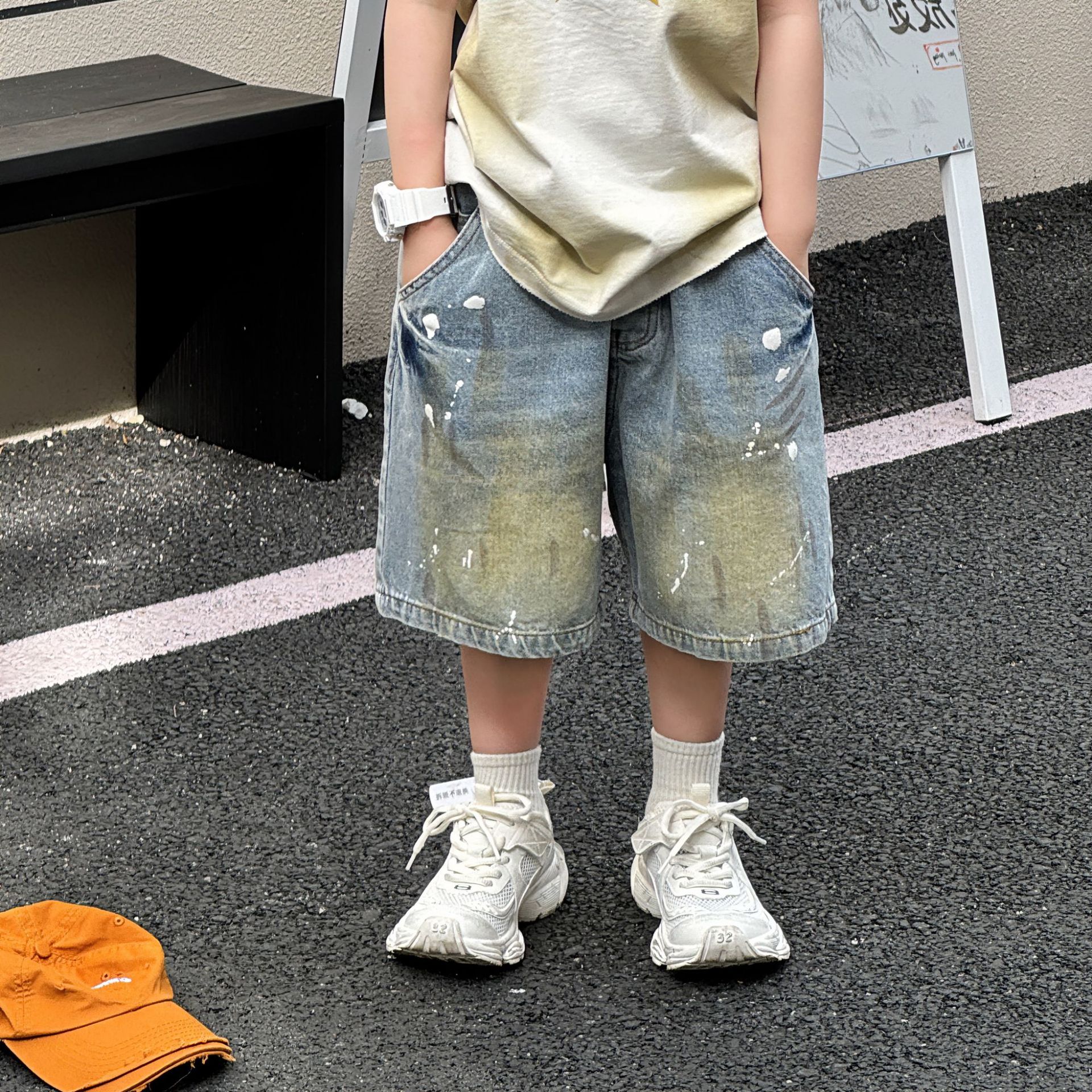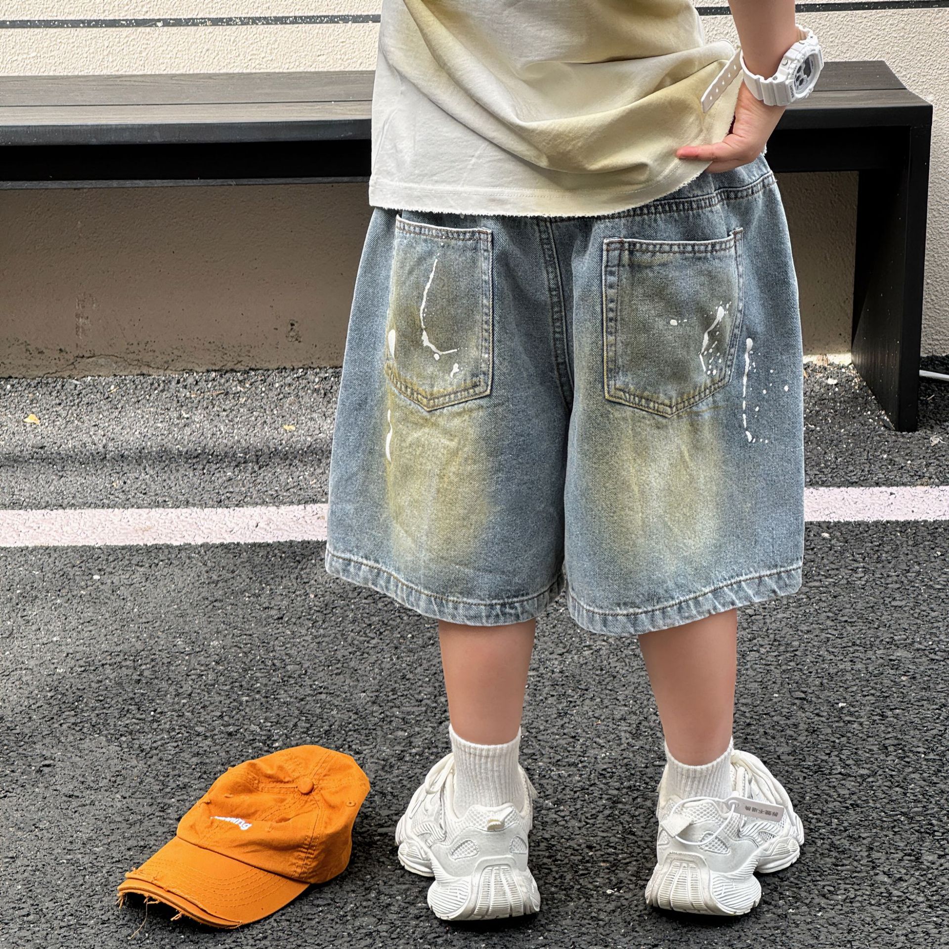 Tailu 2025 여름 새로운 도착 한국 스타일 소년 올매치 아메리칸 스타일 레트로 스플래시 잉크 디자인 청바지 어린이를위한 트렌디 한 반바지