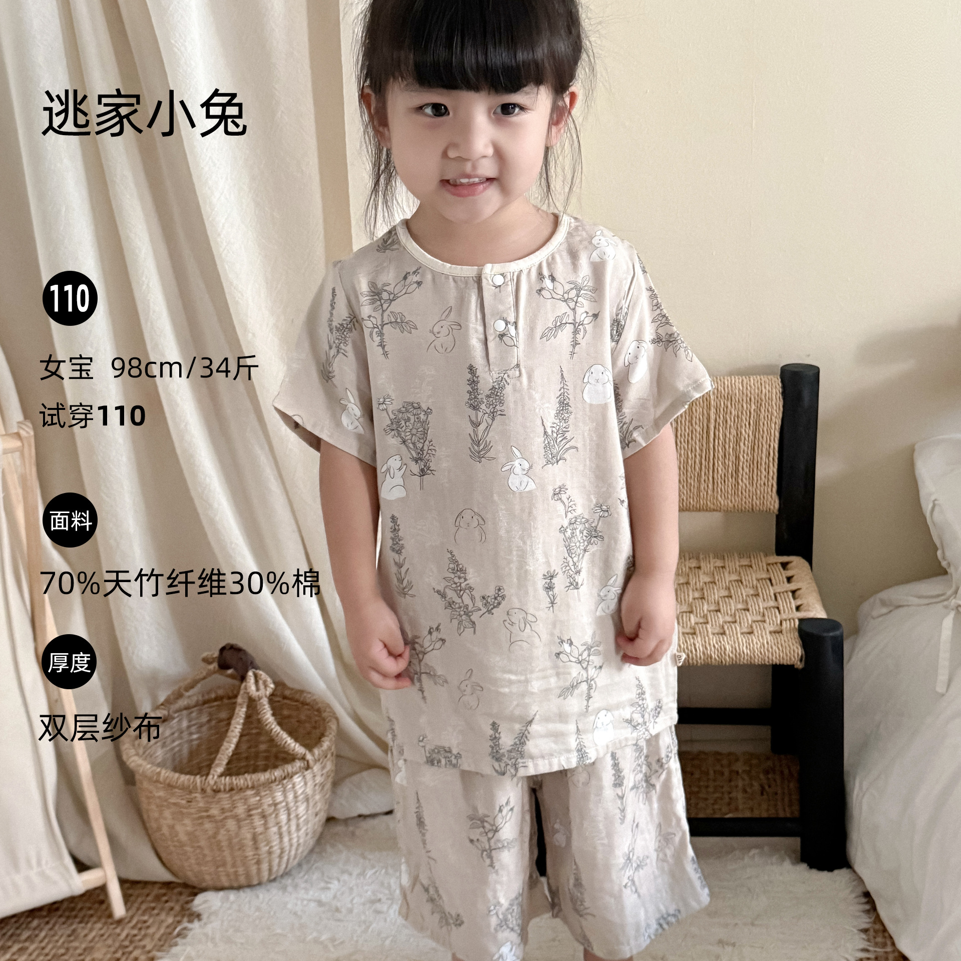 A 급 대나무 면 거즈 어린이 잠옷 여름 소년 소녀 홈 옷 얇은 옷 아기 반팔 에어컨 옷스토어 가기