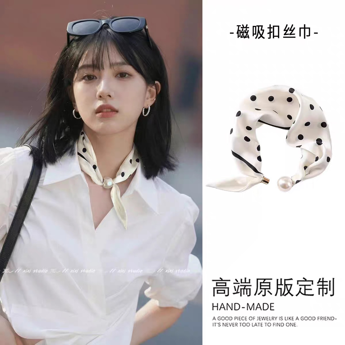 2025 새로운 자기 버클 스카프 여성 봄, 여름 얇은 진주 목걸이 게으른 펜던트 스카프 쇄골 체인 스카프스토어 가기