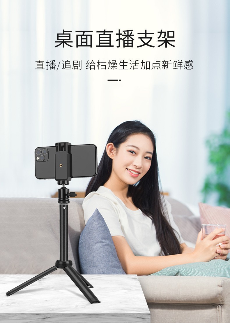 라이브 스트리밍 휴대폰 홀더 휴대용 미니 2섹션 데스크탑 홀더 텔레스코픽 필 라이트 연장 막대 연장 막대 삼각대