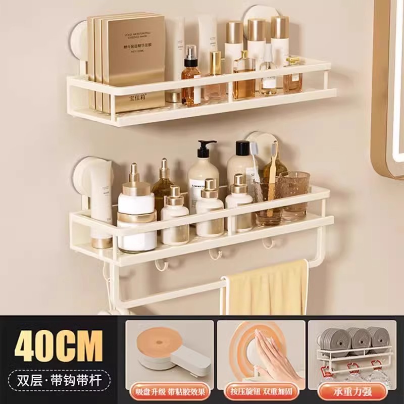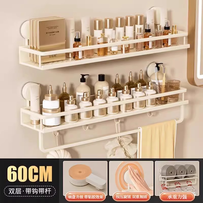 • [업그레이드된 이중 레이어 흡입 컵 모델] (막대 및 후크 포함) Xiaomi 보관 랙 60cm 우유 흰색