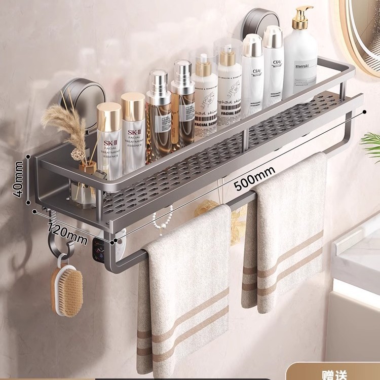 스페이스 알루미늄 욕실 흡입 컵 스토리지 랙 벽걸이 형 펀치없는 욕실 수건 랙 세면대 다기능 스토리지스토어 가기