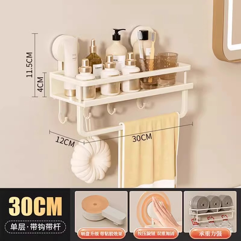 • [단층 흡착컵 모델] (막대와 후크 포함) Xiaomi 보관함 30cm 밀크 화이트