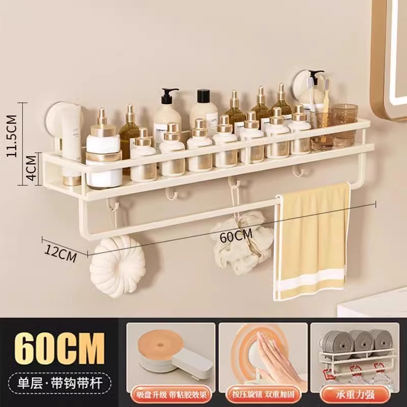 • [단층 흡착컵 모델] (막대 및 후크 포함) Xiaomi 보관함 60cm 밀크 화이트
