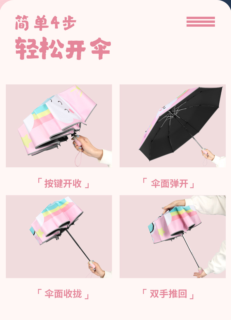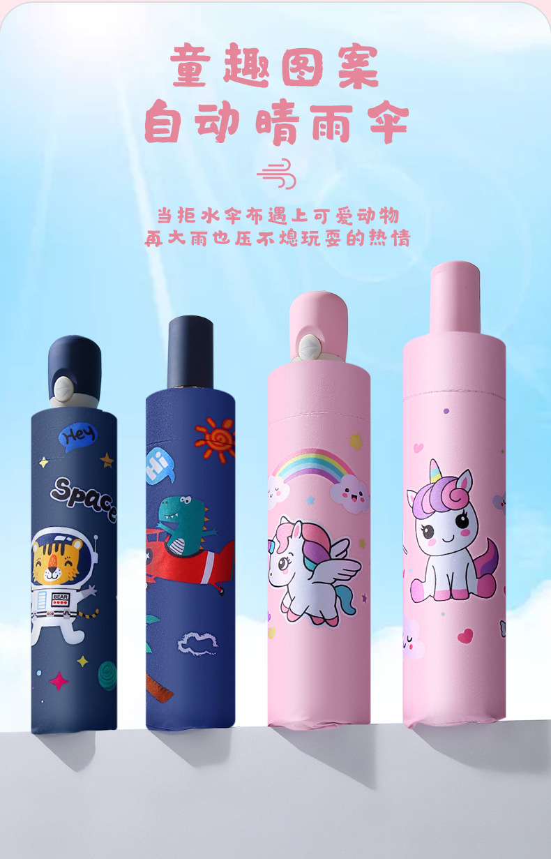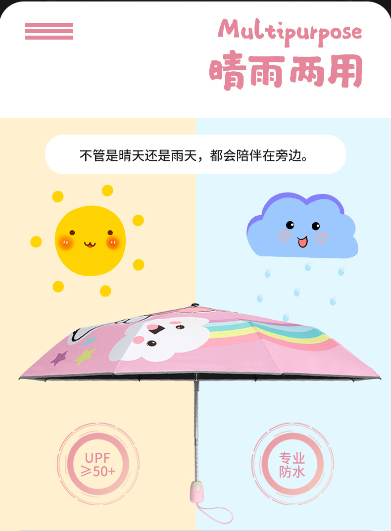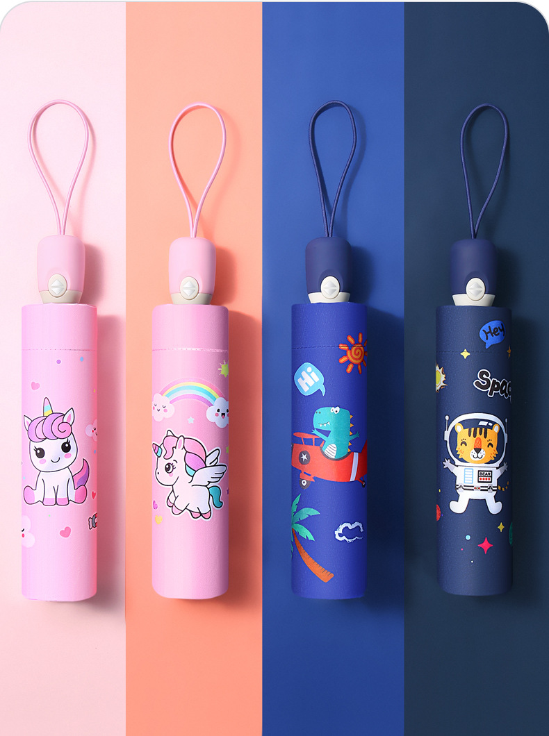 어린이 우산 반등 방지 붕괴 학생 남녀 햇빛 선스크린 휴대용 귀여운 만화 접는 우산스토어 가기