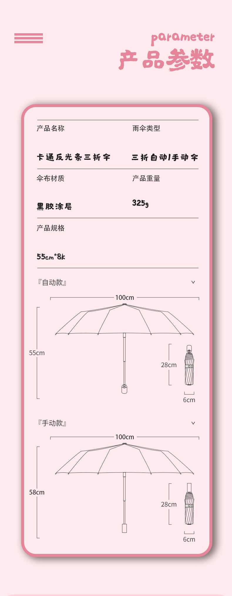 • Love Pony [알루미늄 합금 뼈 + 반사 가장자리] 초경량 완전 자동 우산