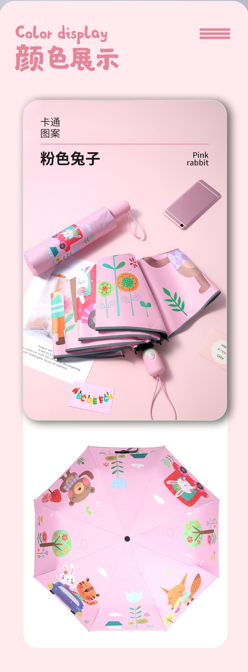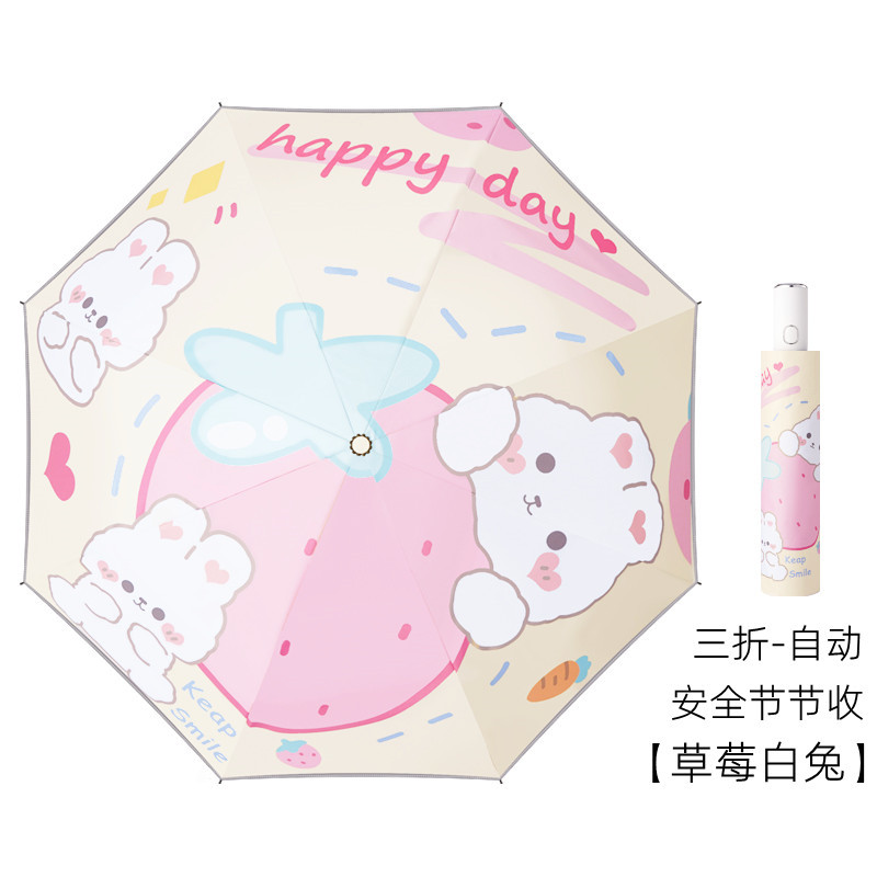 • 딸기 핑크 토끼 [알루미늄 합금 뼈 + 반사 가장자리] 초경량 완전 자동 우산