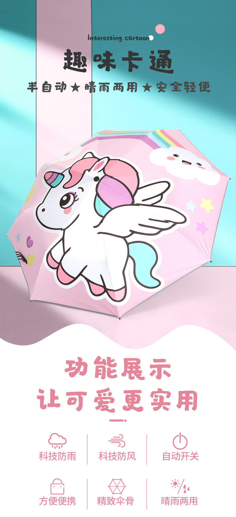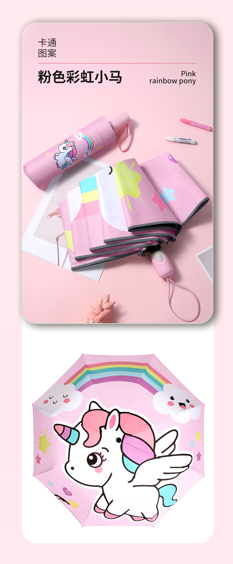 • 마이 리틀 포니 [알루미늄 합금 뼈 + 반사 가장자리] 초경량 완전 자동 우산