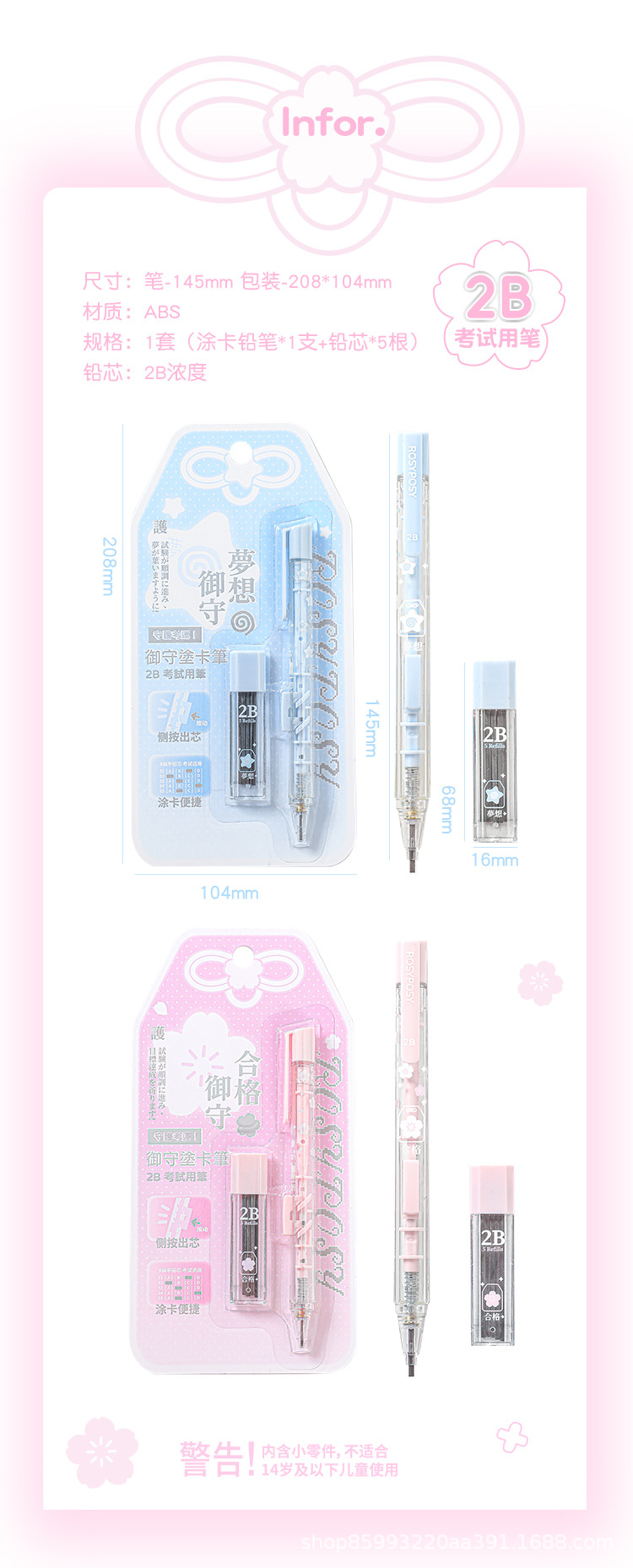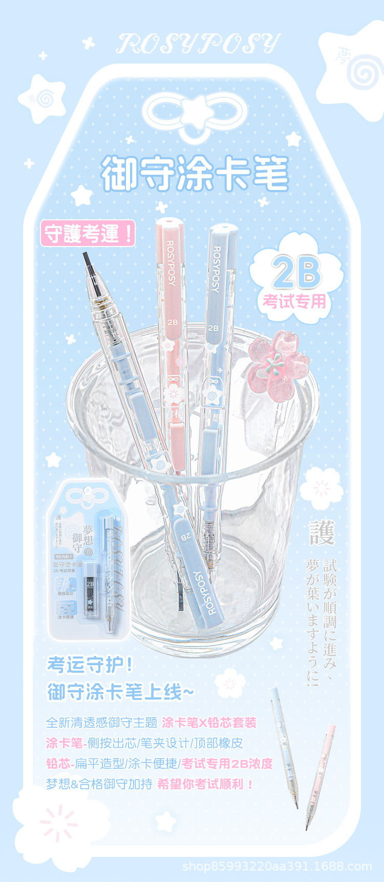 소프트 디자인 유슈 시험 카드 연필 세트 시험 세트 2B 연필 측면 푸시 아웃 코어 자동 리드 포함스토어 가기