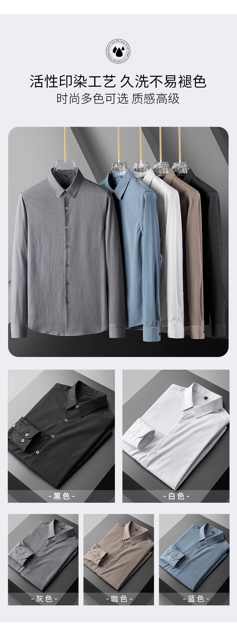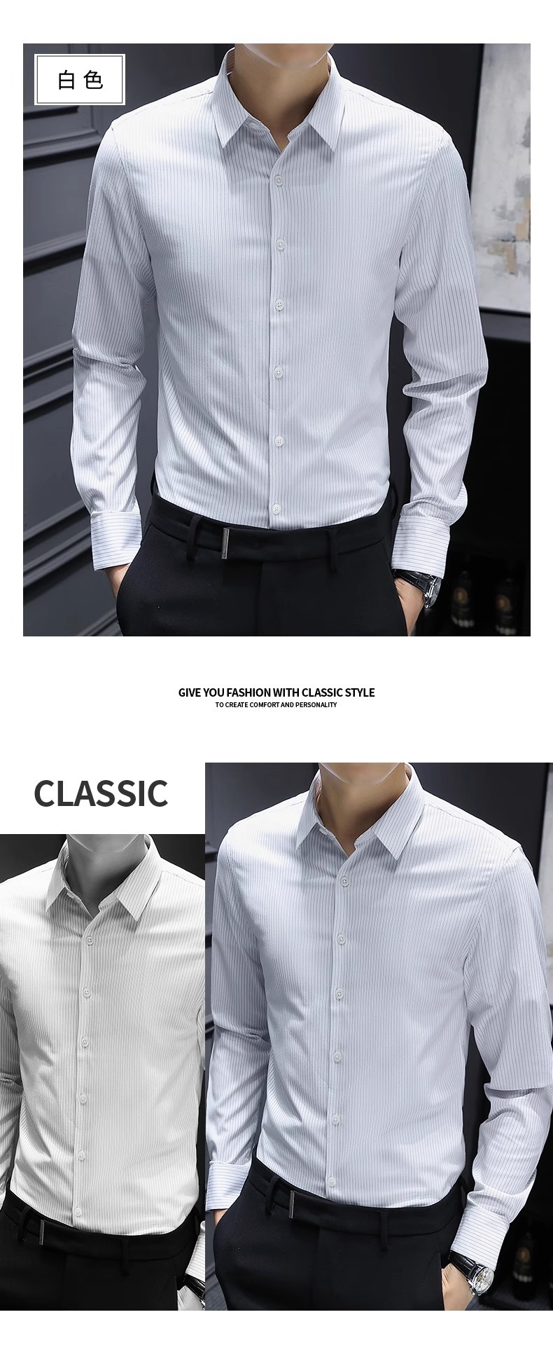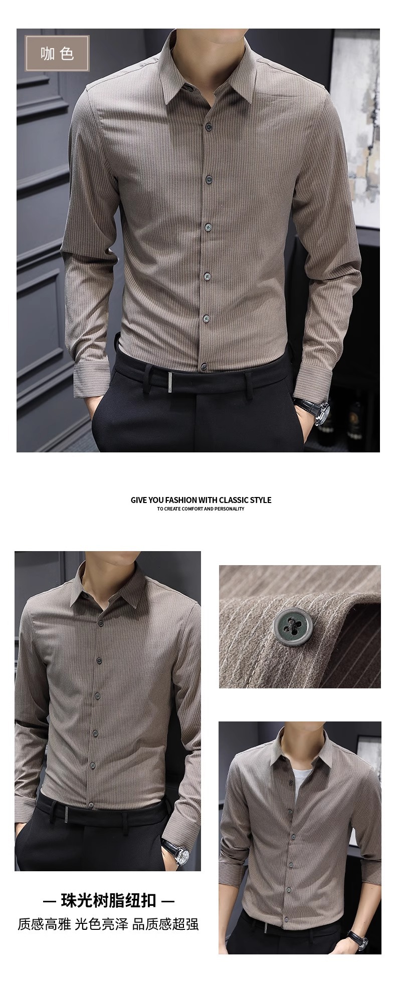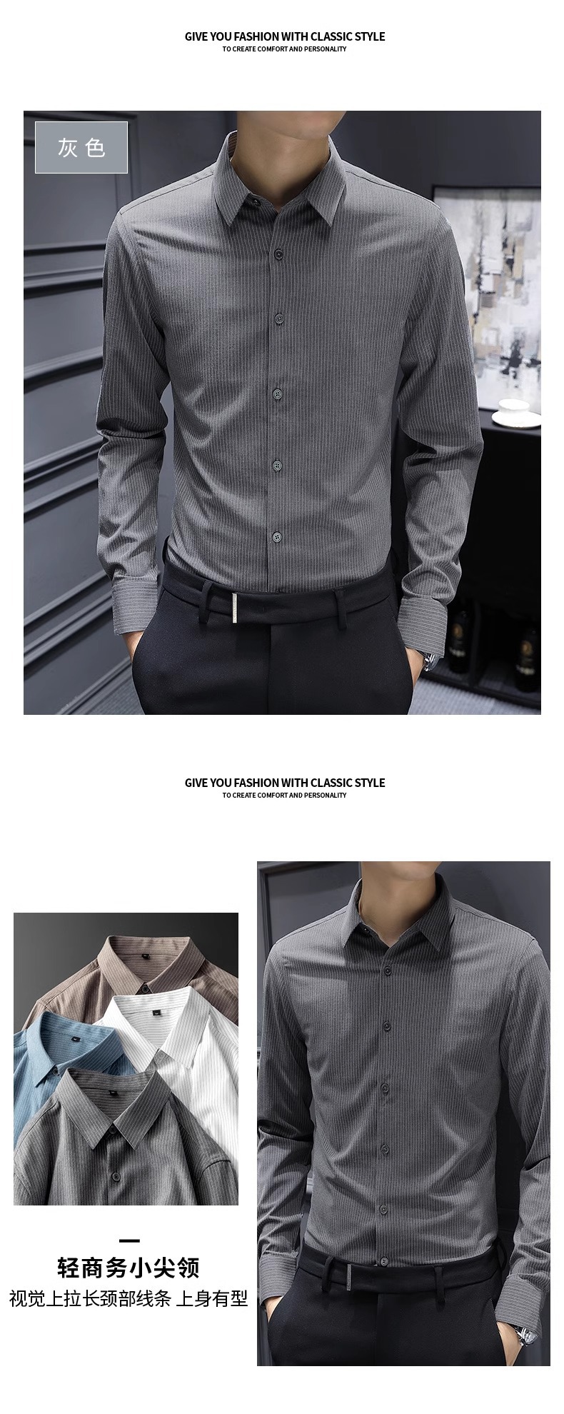 스트라이프 셔츠 남성용 긴팔 주름 방지 노다림질 봄, 가을 2025 신작 비즈니스 캐주얼 셔츠 고급 트렌디 인치 셔츠스토어 가기