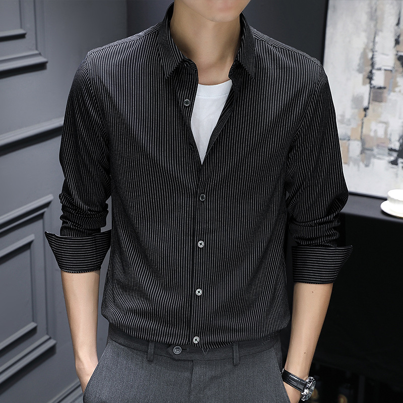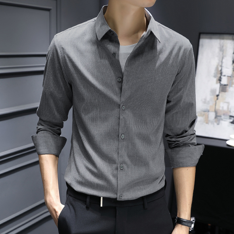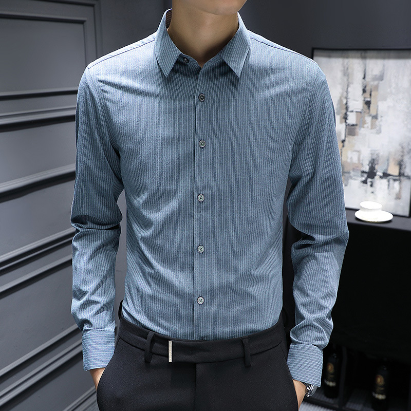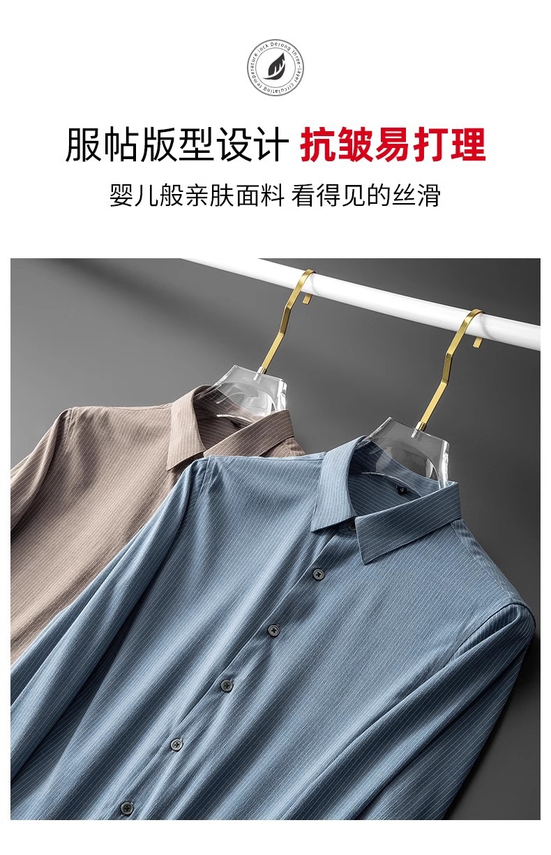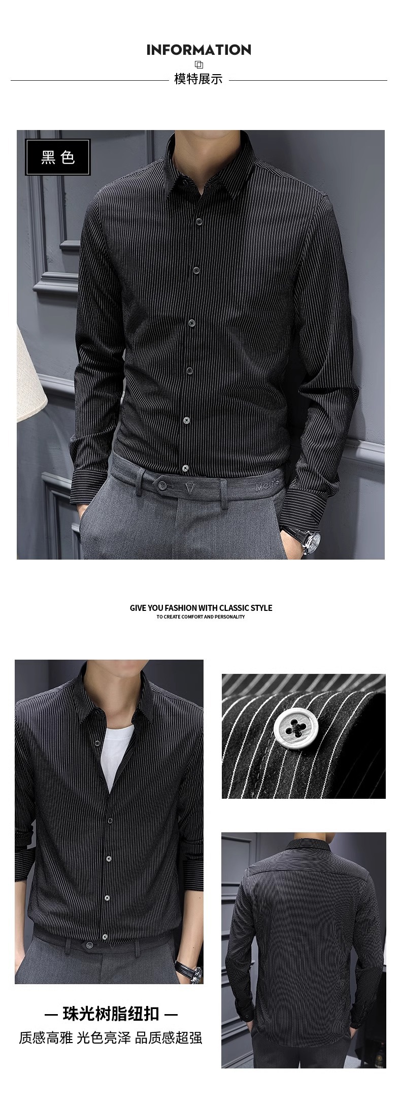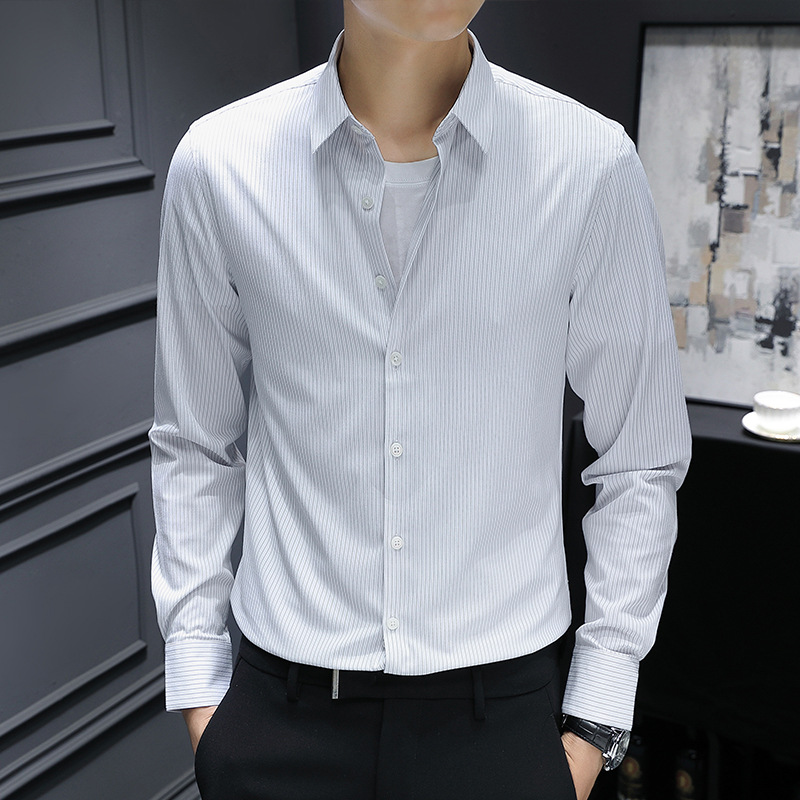스트라이프 셔츠 남성용 긴팔 주름 방지 노다림질 봄, 가을 2025 신작 비즈니스 캐주얼 셔츠 고급 트렌디 인치 셔츠스토어 가기