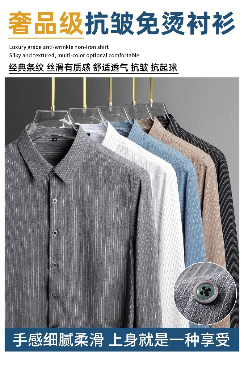 스트라이프 셔츠 남성용 긴팔 주름 방지 노다림질 봄, 가을 2025 신작 비즈니스 캐주얼 셔츠 고급 트렌디 인치 셔츠