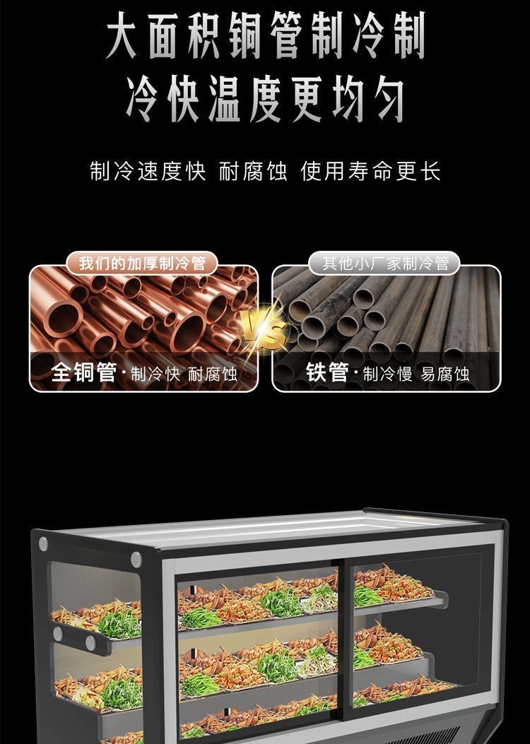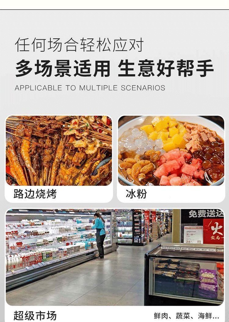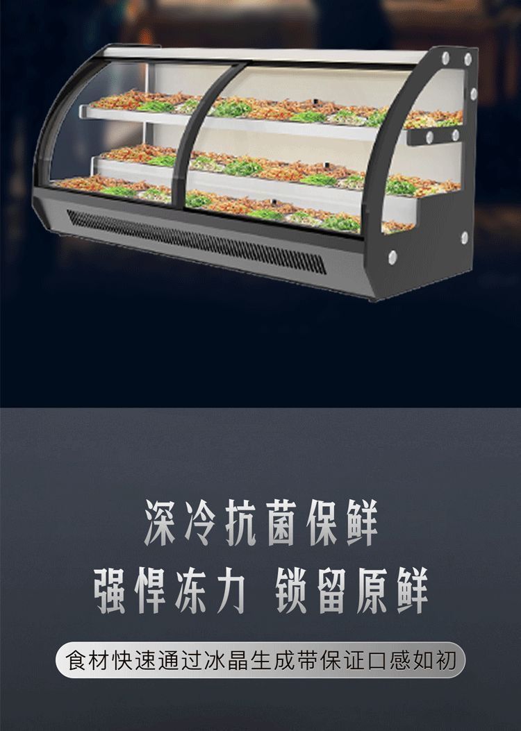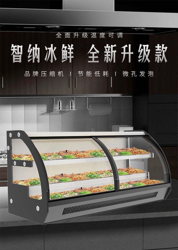 데스크탑 계단식 냉장 및 신선도 유지 디스플레이 캐비닛, 얼음 테이블, 얼음 캐비닛, 삼륜차, 상업용 꽈배기 바베큐 주문스토어 가기