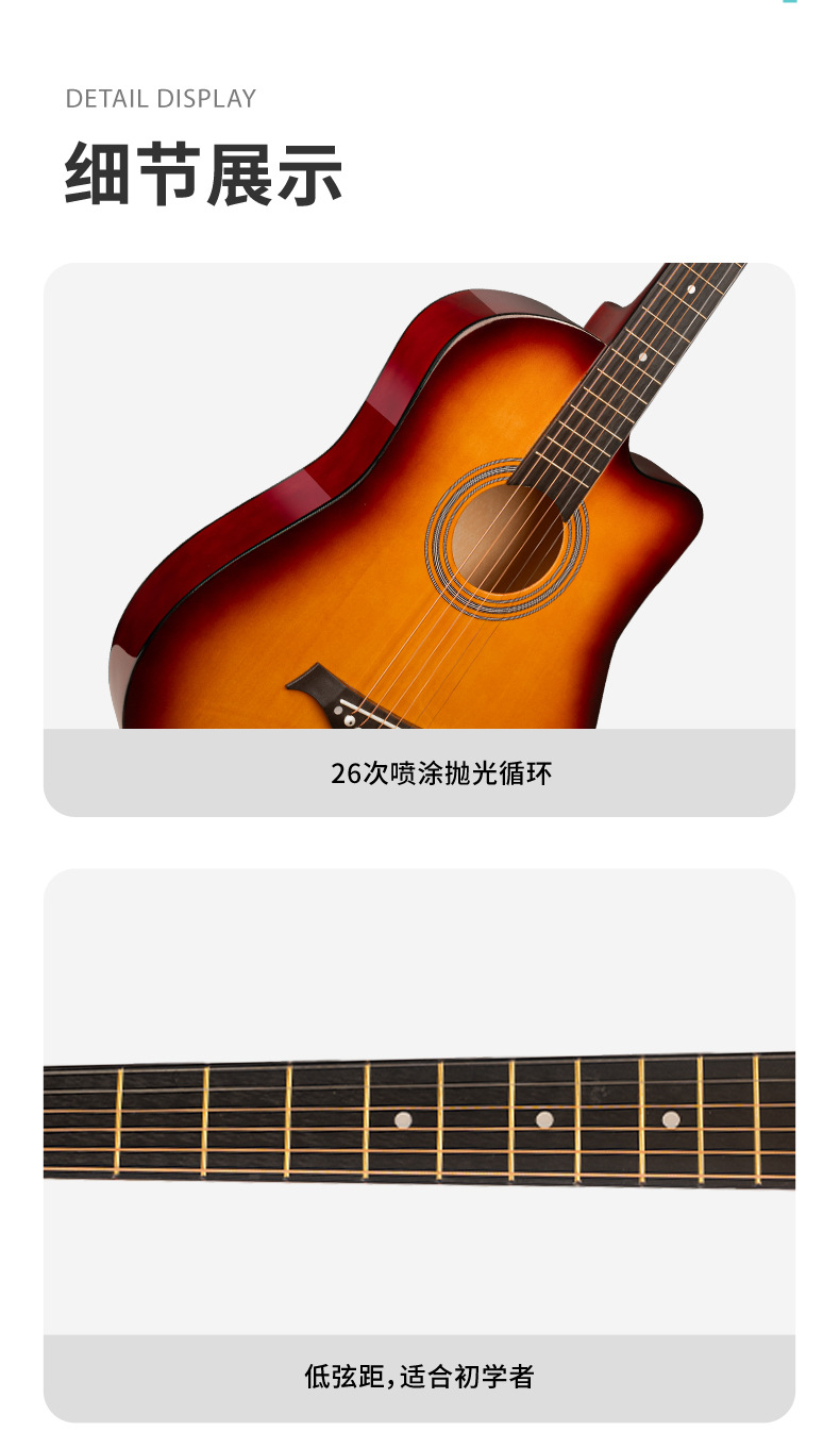 38inch 기타 포크 기타 성인 초급 입문 연습 피아노 인기 학생 41 목재 기타 악기 크로스보더스토어 가기