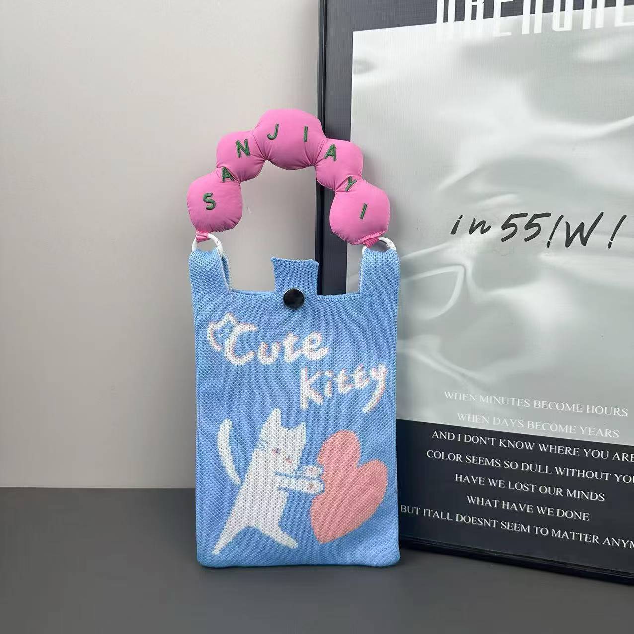 새로운 크로스 바디 휴대 전화 가방 여성 니트 동전 지갑 유행 통근 및 쇼핑을위한 올 매치 귀여운 어깨 핸드백