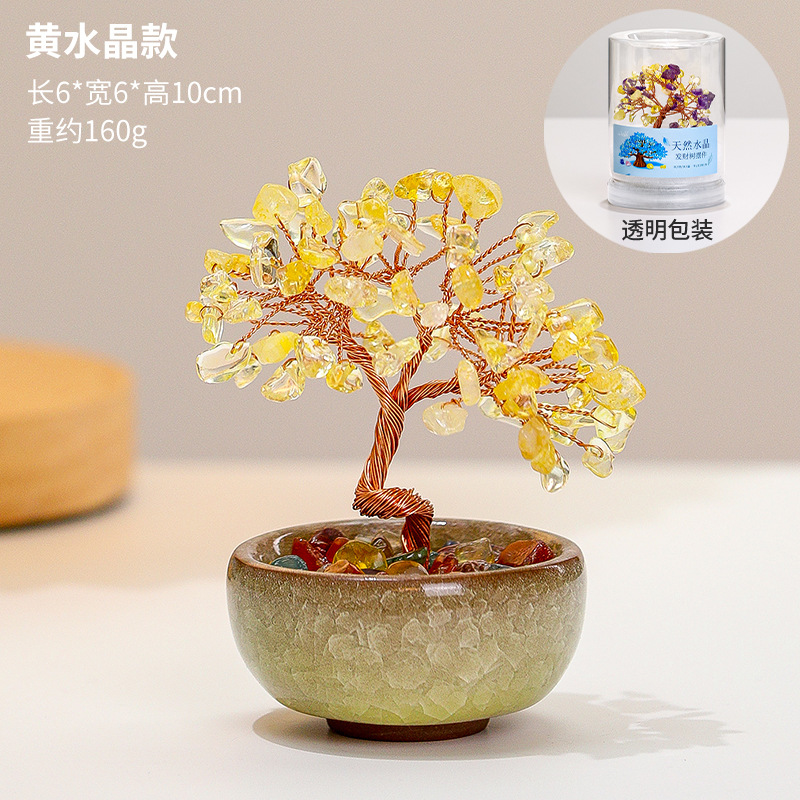 크리스탈 행운나무 장식품 천연 황수정 탁상 장식 사무실 책상 선물 신제품 새해 기념품