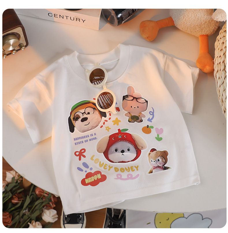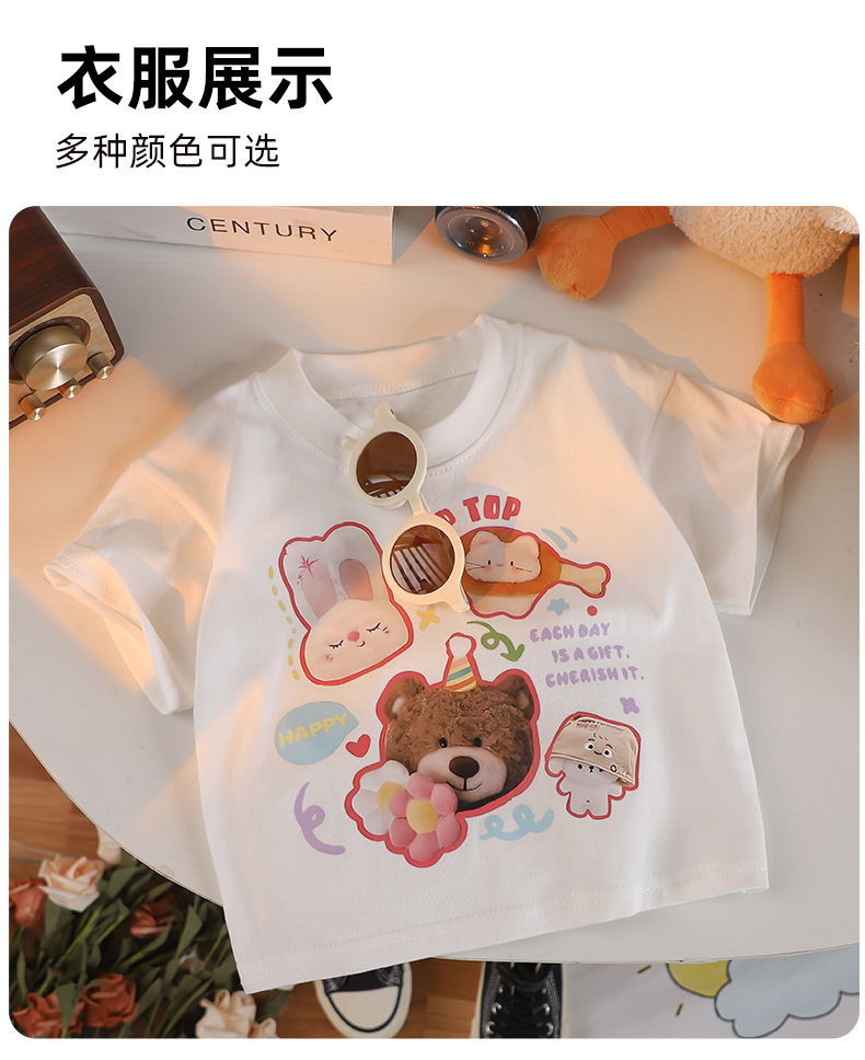 어린이 티셔츠 새로운 스타일 소년 아기 여름 만화 소녀 반팔 한국 스타일 느슨한 캐주얼 탑 라운드 넥 아동 의류스토어 가기