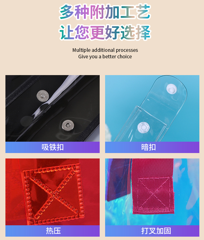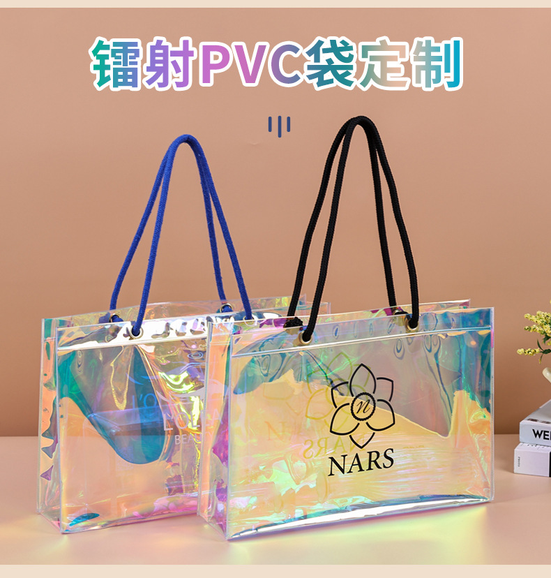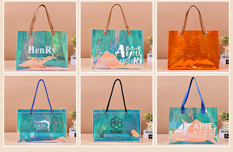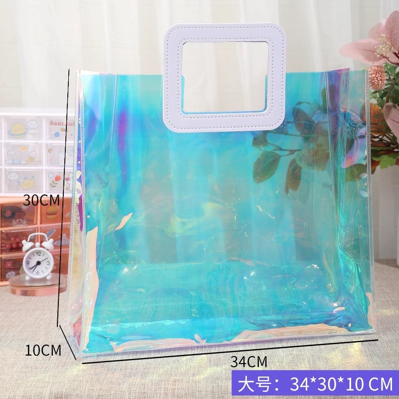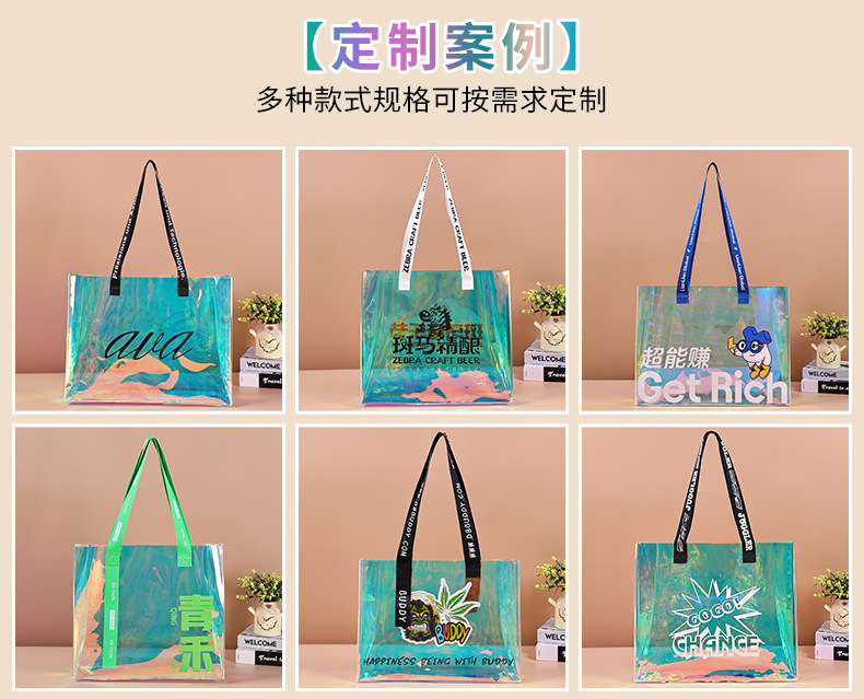 30 실크 PVC 레이저 가방 맞춤형 TPU 매직 핸드백 컬러 투명 쇼핑 의류 포장 가방 인쇄 로고