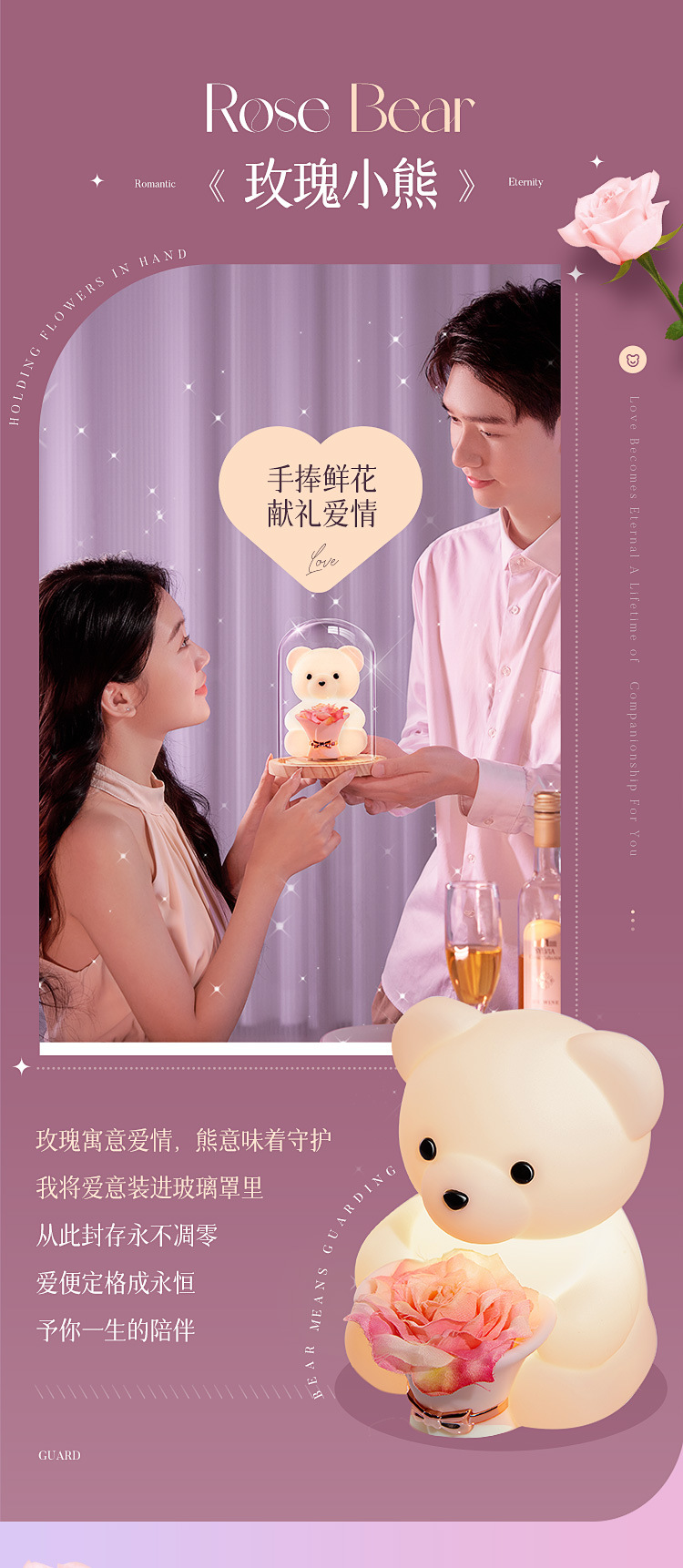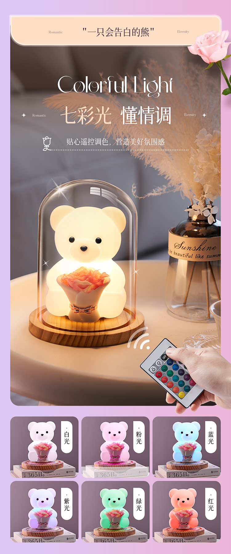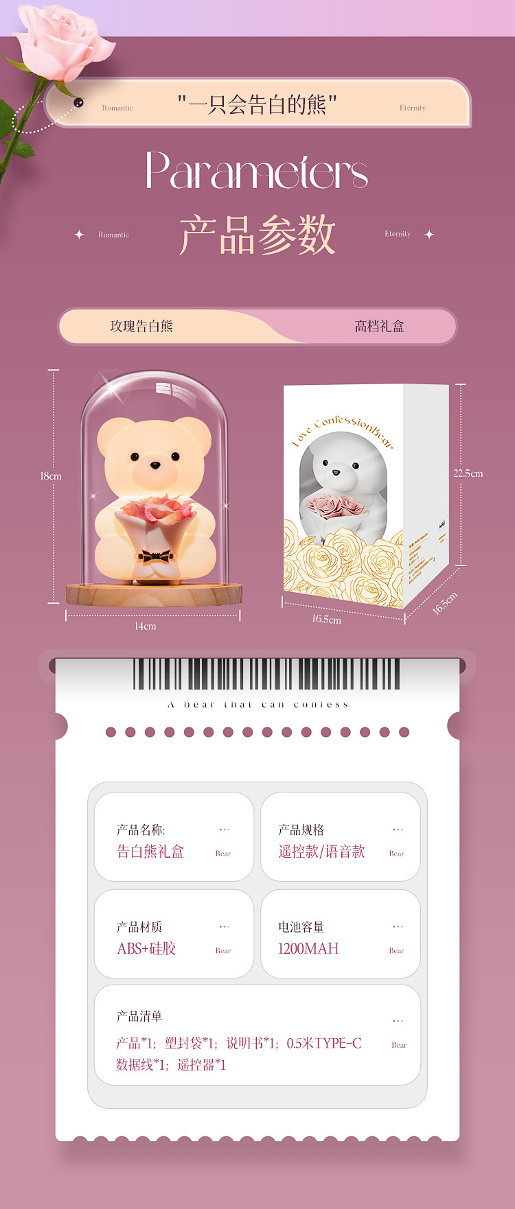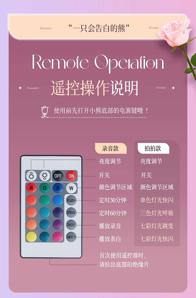 • ️친밀한 세트️[업그레이드된 음성 모델 + 핑크 장미 7개] 절묘한 포장