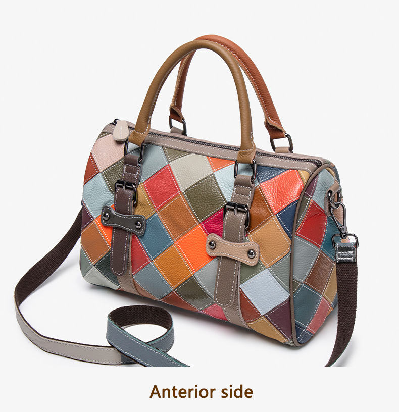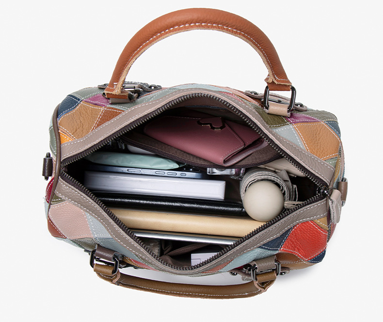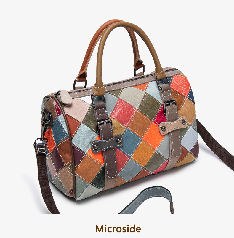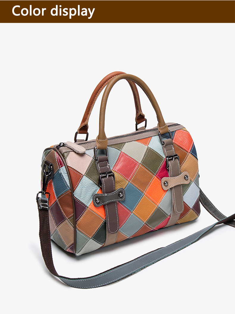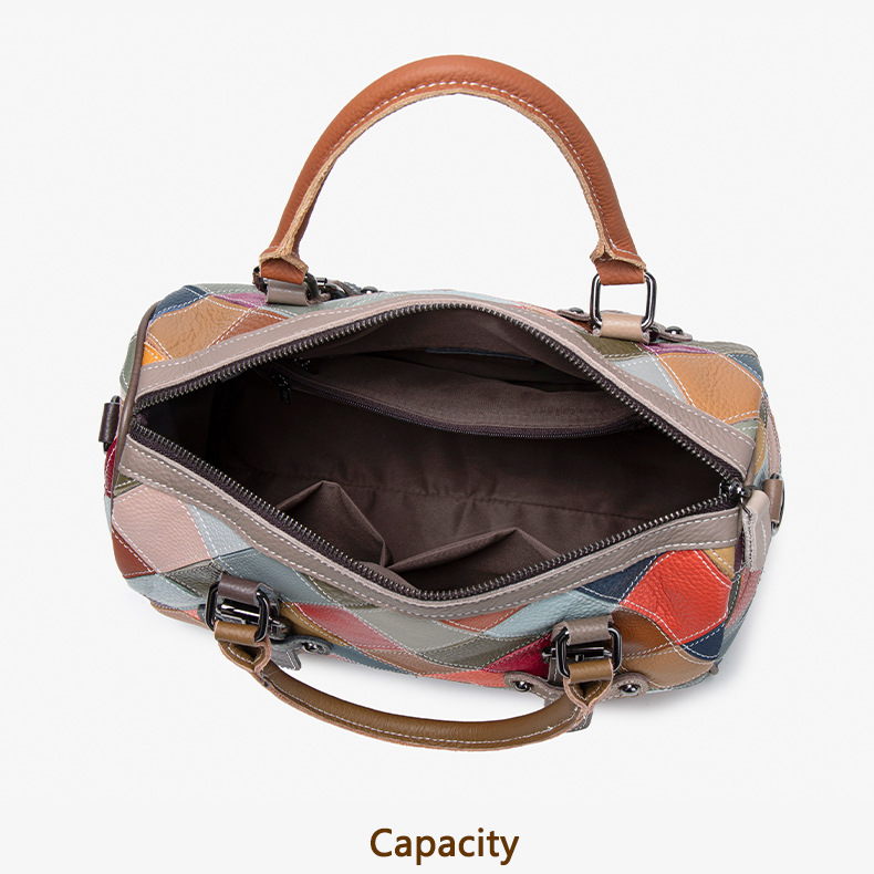 새로운 질감의 소가죽 핸드백, 대비되는 색상, 캐주얼하고 다재다능한 원 숄더 크로스바디 보스턴백, 여행용 대용량 가방스토어 가기