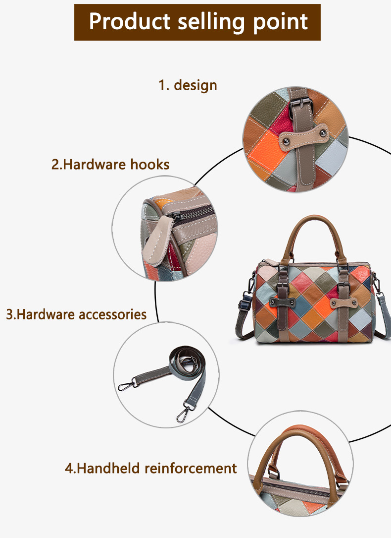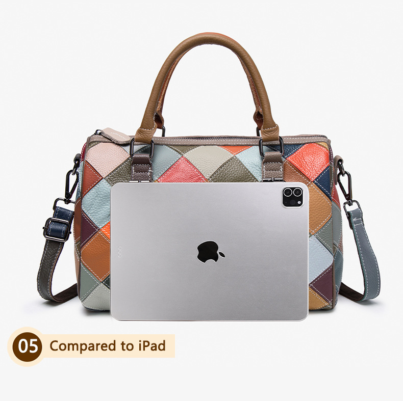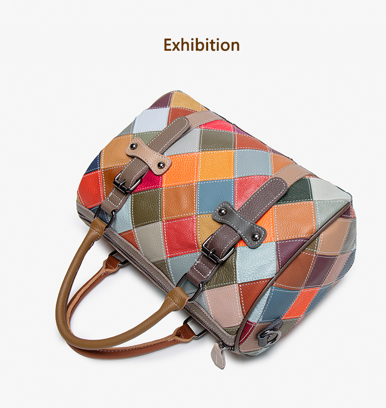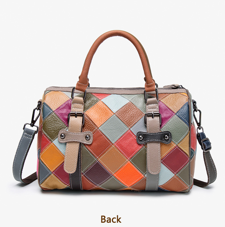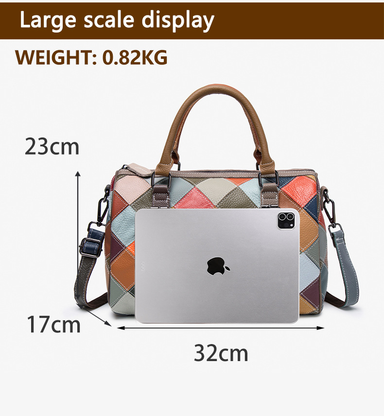 새로운 질감의 소가죽 핸드백, 대비되는 색상, 캐주얼하고 다재다능한 원 숄더 크로스바디 보스턴백, 여행용 대용량 가방스토어 가기