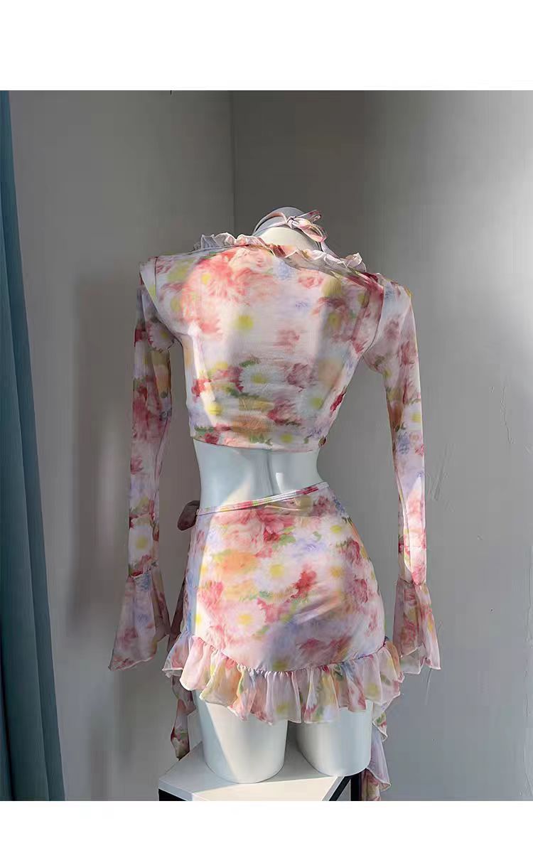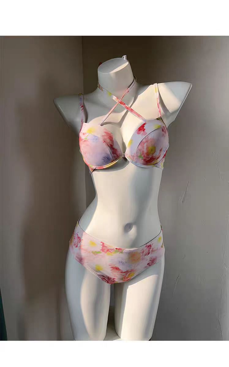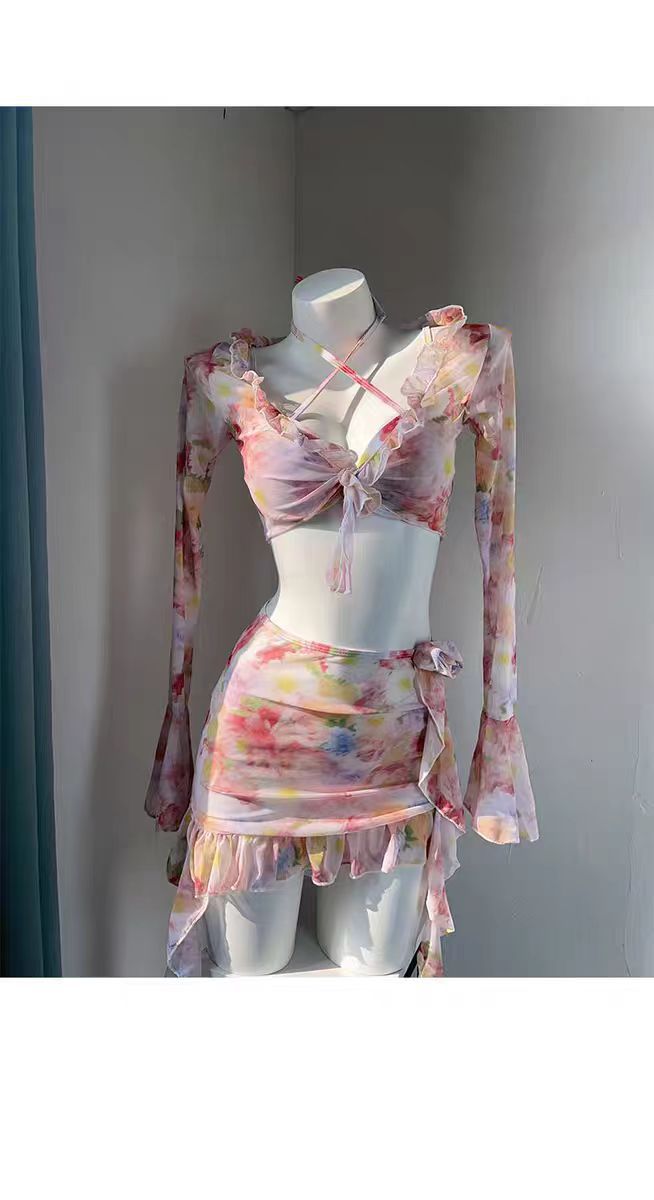 비키니 수영복 스플릿 4피스 긴팔 패션 프린트 달콤하고 섹시한 언더와이어 푸시업 비치 수영복 도매스토어 가기