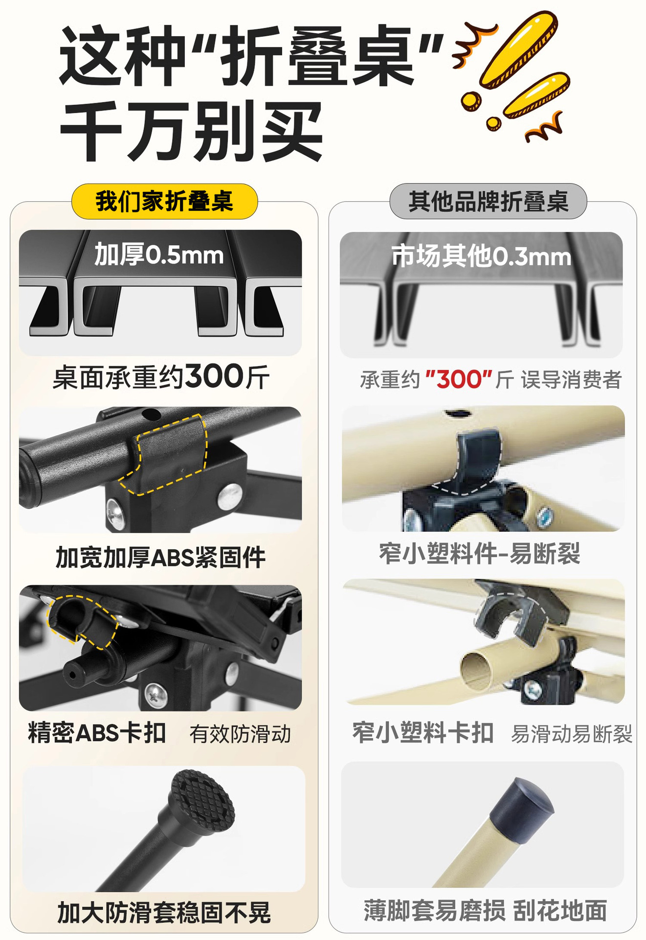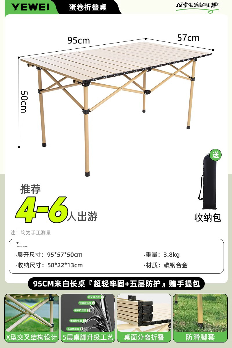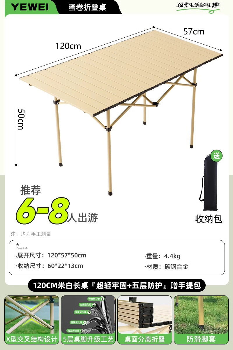 • 120cm 황백색 롱 테이블 [안전하고 안정적이며 내하력이 뛰어남] 수납 가방 포함