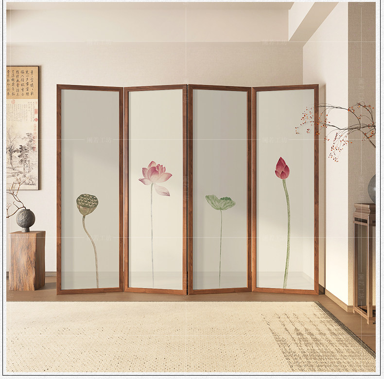 새로운 중국 스타일 스크린 파티션 거실 입구 호텔 침실 사무실 차단 연꽃 접이식 모바일