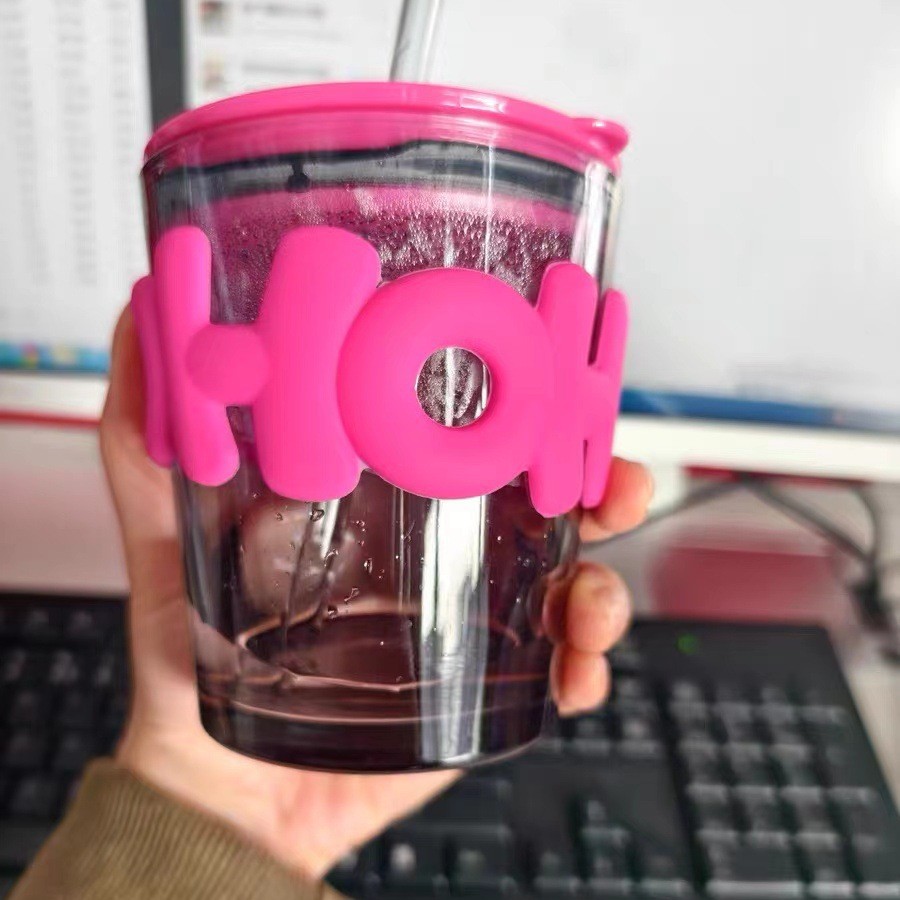 인터넷 연예인 사슴 밀짚 컵 더블 마시는 컵 대용량 사무실 홈 유리 물 컵 복지 제품 작은 선물 컵
