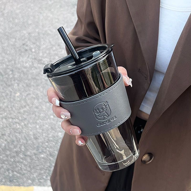인터넷 연예인 사슴 밀짚 컵 더블 마시는 컵 대용량 사무실 홈 유리 물 컵 복지 제품 작은 선물 컵스토어 가기